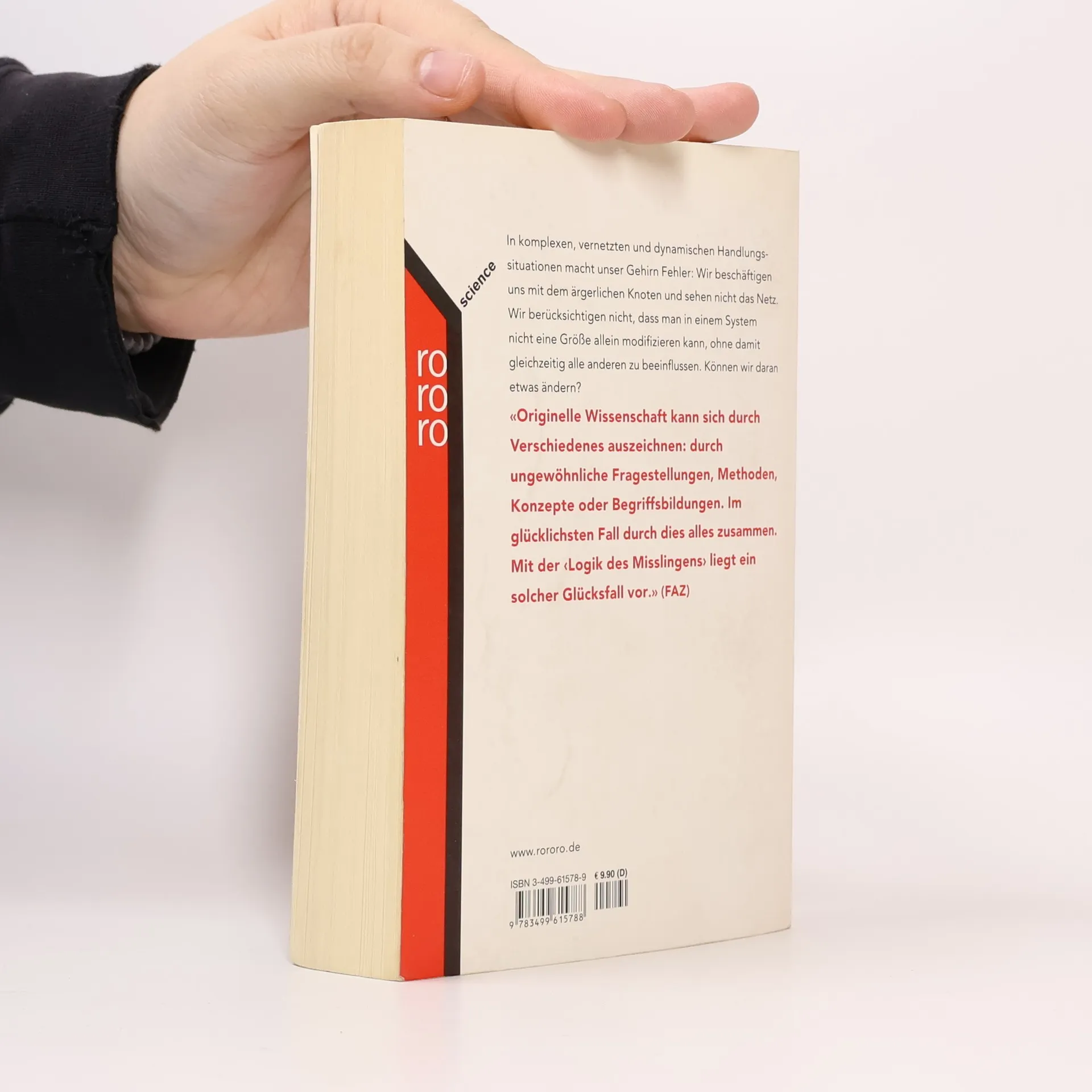 In komplexen, vernetzten und dynamischen Handlungssituationen macht unser Gehirn Fehler: Wir beschäftigen uns mit dem ärgerlichen Knoten und sehen nicht das Netz. Wir berücksichtigen nicht, dass man in einem System nicht eine Größe allein modifizieren kann, ohne damit gleichzeitig alle anderen zu beeinflussen. Können wir daran etwas ändern?«Originelle Wissenschaft kann sich durch Verschiedenes auszeichnen: durch ungewöhnliche Fragestellungen, Methoden, Konzepte oder Begriffsbildungen. Im glücklichsten Fall durch dies alles zusammen. Mit der ‹Logik des Misslingens› liegt ein solcher Glücksfall vor.» (FAZ)
