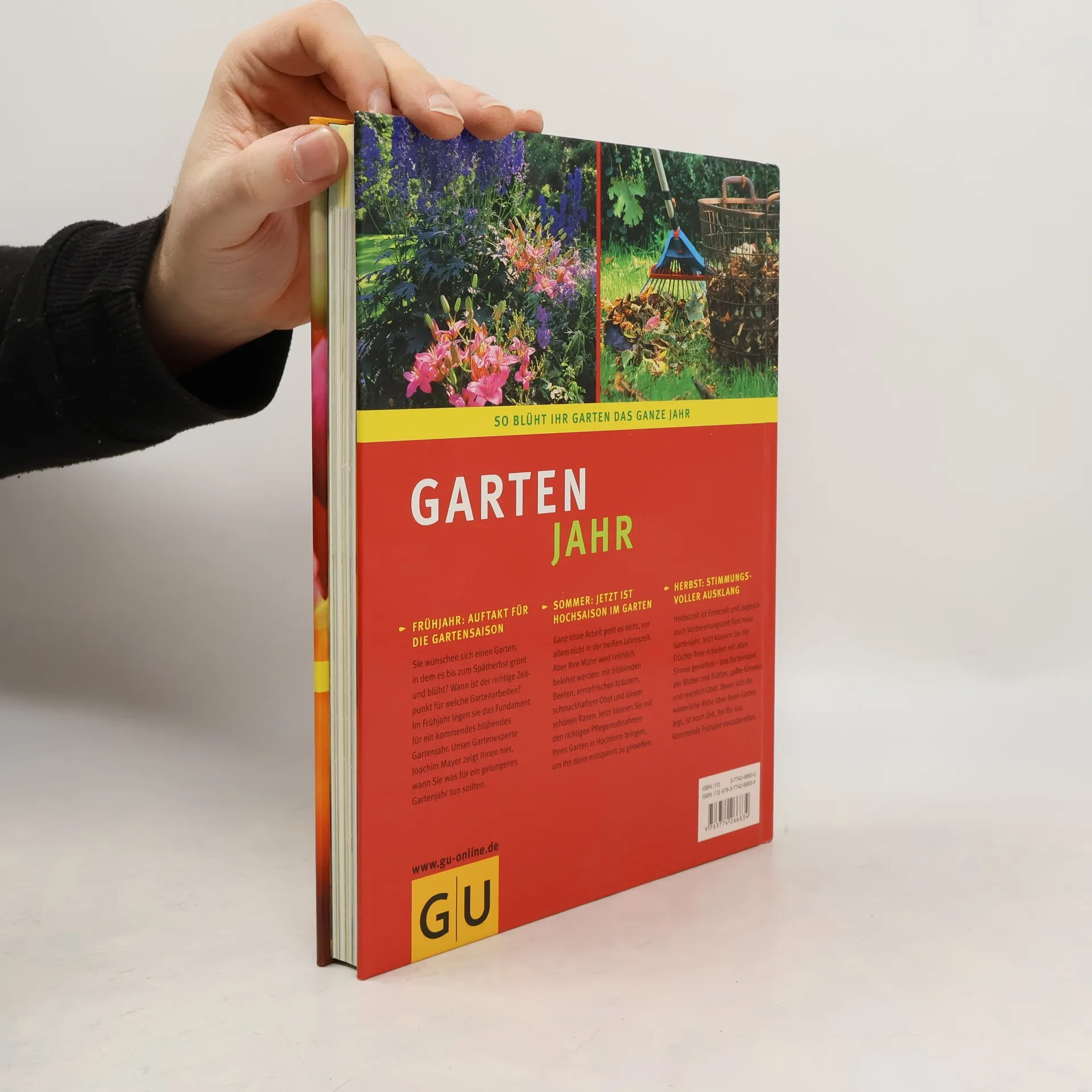 Wer wünscht sich nicht einen Garten, in dem es vom Frühjahr bis zum Spätherbst grünt und blüht, der immer frisches Obst und Gemüse bietet und stets erntefrische Kräuter bereit hält? Wie so oft ist auch dieser Wunsch eine Frage des richtigen Zeitpunkts. Wann soll ich welche Pflanzen einsetzen? Wann und wie soll ich sie pflegen? Wann muss ich was im Gartenjahr machen? In diesem Ratgeber gibt unser Gartenexperte Joachim Mayer, ausführliche und leicht verständliche Antworten auf diese Fragen. Er verrät Ihnen, wie Ihr Traum vom Gartenglück in Erfüllung gehen kann. Einfache Schritt-für-Schritt-Anleitungen, praktische Tipps und Informationen zu Pflanzenauswahl und -pflege von Januar bis Dezember wecken die Lust aufs Gärtnern. Und eine Übersicht der 100 schönsten Pflanzen hilft Ihnen, für jeden Standort und zu jeder Jahreszeit die ideale Lösung zu finden.