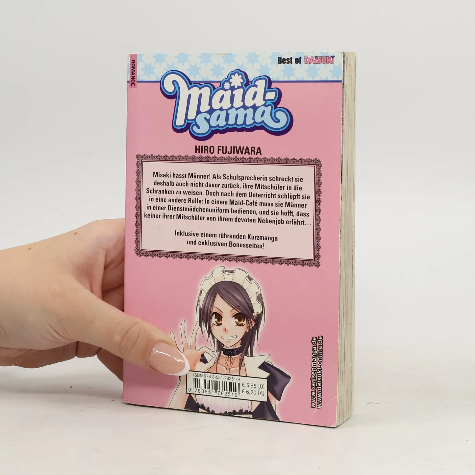 MAID-SAMA begeistert mit Spannung, Romantik und urkomischen Abenteuern. Zwischen Maid-Café und Schulalltag ist Chaos hier vorprogrammiert! Misaki hasst Männer! Als Schulsprecherin schreckt sie deshalb auch nicht davor zurück, ihre Mitschüler in die Schranken zu weisen und ihnen Manieren beizubringen. Doch nach dem Unterricht schlüpft sie in eine andere Rolle: In einem Maid-Café muss sie Männer in einer Dienstmädchenuniform bedienen und hoffen, dass keiner ihrer Mitschüler von ihrem devoten Nebenjob erfährt... Inklusive einem rührenden Kurzmanga und exklusiven Bonusseiten! Der herzerwärmende Shojo-Klassiker! Weitere Infos: - empfohlen ab 12 Jahren - mit 18 Bänden und einem Sonderband abgeschlossen - Anime-Stream u. a. auf Crunchyroll und Anime on Demand - Anime-DVD/Blu-ray von KAZÉ Anime