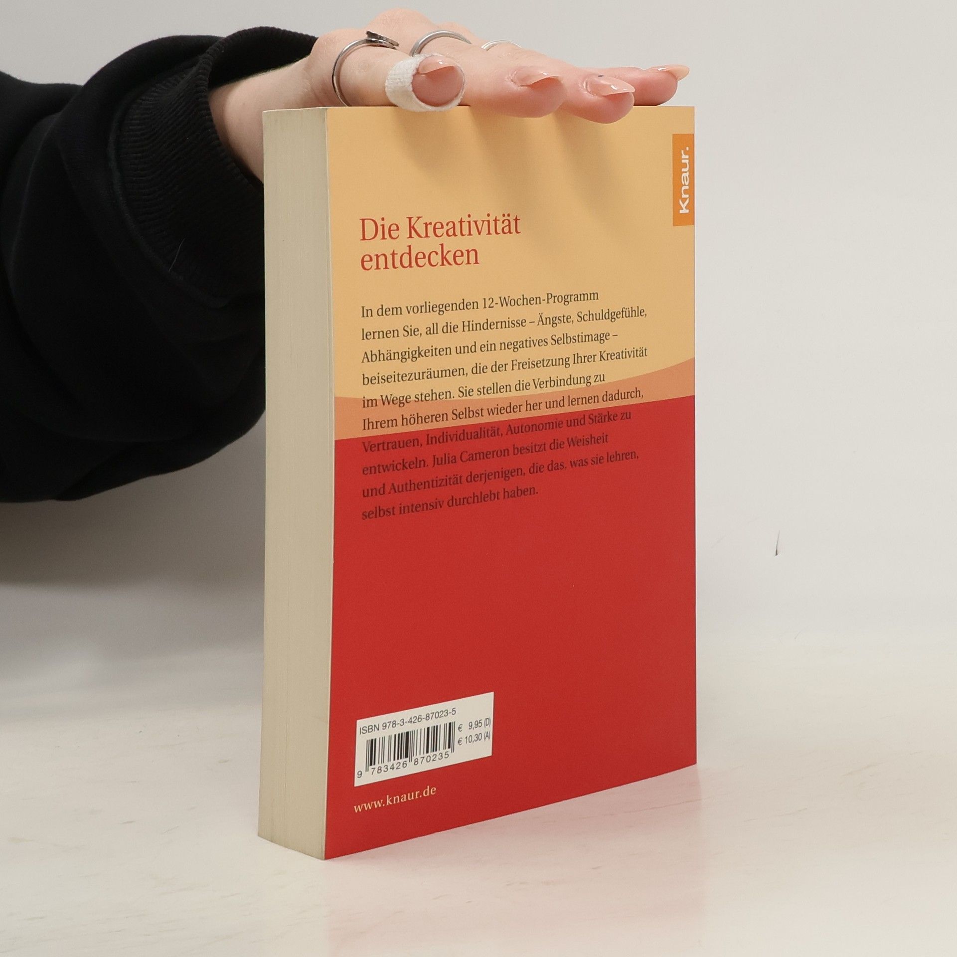 In dem vorliegenden 12-Wochen-Programm lernen Sie, all die Hindernisse - Ängste, Schuldgefühle, Abhängigkeiten und negatives Selbstimage - beiseite zu räumen, die der Freisetzung Ihrer Kreativität im Wege stehen. Sie stellen die Verbindung zu Ihrem höheren Selbst wieder her und lernen dadurch, Vertrauen, Individualität, Autonomie und Stärke zu entwickeln. Julia Cameron besitzt die Weisheit und Authentizität derjenigen, die das, was sie lehren, selbst intensiv durchlebt haben.