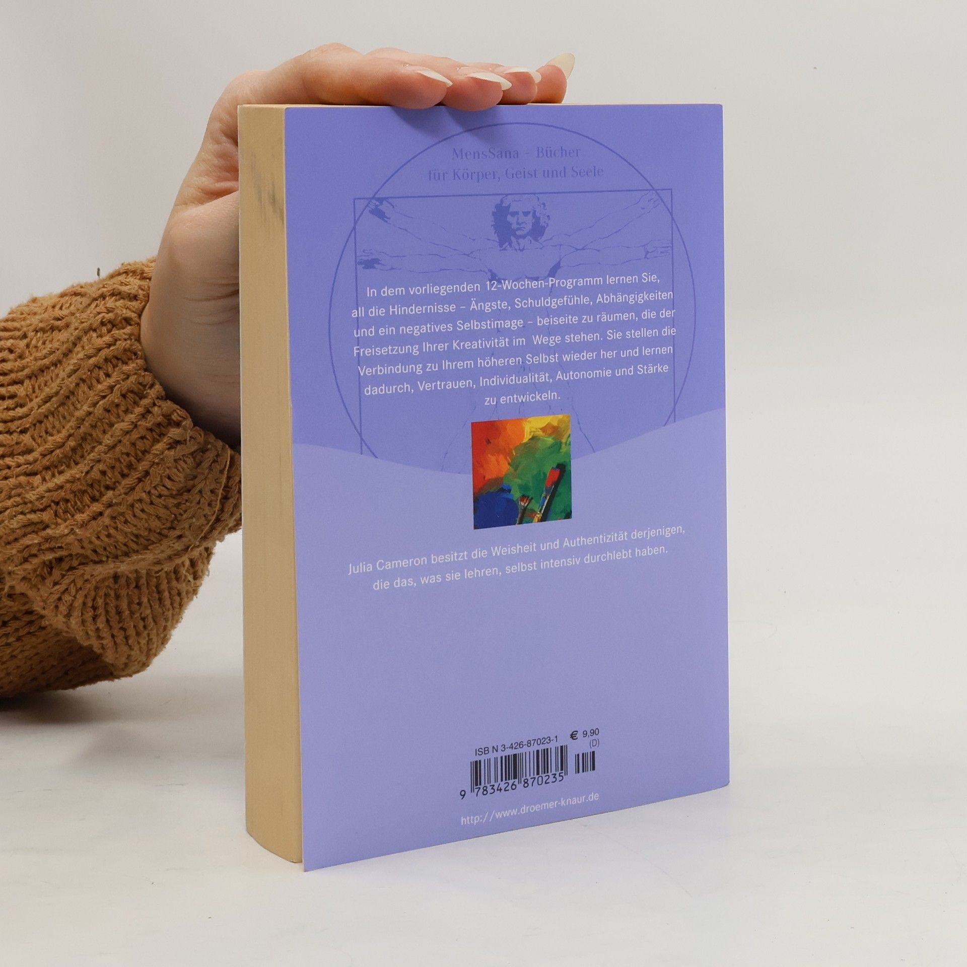 In dem vorliegenden 12-Wochen-Programm lernen Sie, all die Hindernisse - Ängste, Schuldgefühle, Abhängigkeiten und negatives Selbstimage - beiseite zu räumen, die der Freisetzung Ihrer Kreativität im Wege stehen. Sie stellen die Verbindung zu Ihrem höheren Selbst wieder her und lernen dadurch, Vertrauen, Individualität, Autonomie und Stärke zu entwickeln. Julia Cameron besitzt die Weisheit und Authentizität derjenigen, die das, was sie lehren, selbst intensiv durchlebt haben.