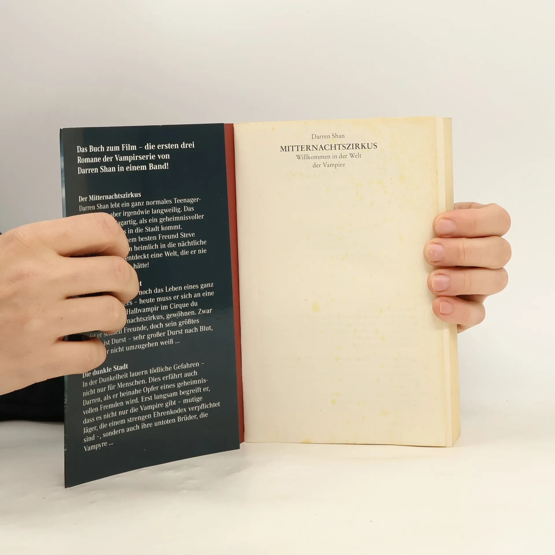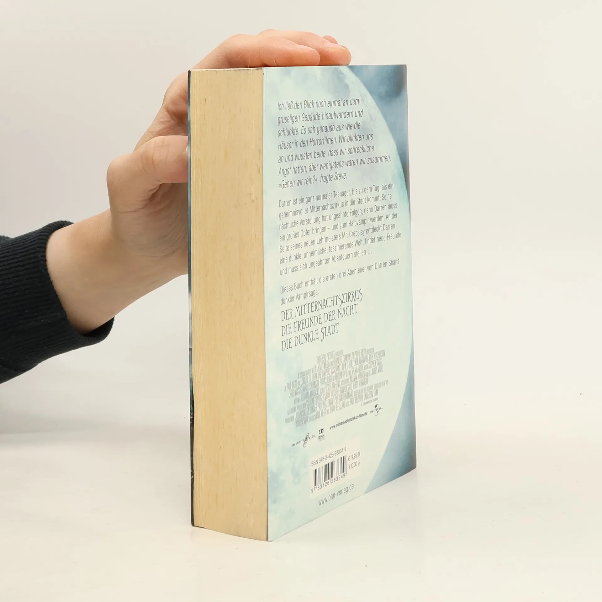 Ich ließ den Blick noch einmal an dem gruseligen Gebäude hinaufwandern und schluckte. Es sah genauso aus wie die Häuser in den Horrorfilmen. Wir blickten uns an und wussten beide, dass wir schreckliche Angst hatten, aber wenigstens waren wir zusammen. »Gehen wir rein?«, fragte Steve. Darren ist ein ganz normaler Teenager, bis zu dem Tag, als ein geheimnisvoller Mitternachtszirkus in die Stadt kommt. Seine nächtliche Vorstellung hat ungeahnte Folgen, denn Darren muss ein großes Opfer bringen – und zum Halbvampir werden! An der Seite seines neuen Lehrmeisters Mr. Crepsley entdeckt Darren eine dunkle, unheimliche, faszinierende Welt, findet neue Freunde und muss sich ungeahnten Abenteuern stellen … Dieses Buch enthält die ersten drei Abenteuer von Darren Shans dunkler Vampirsaga: DER MITTERNACHTSZIRKUS DIE FREUNDE DER NACHT DIE DUNKLE STADT