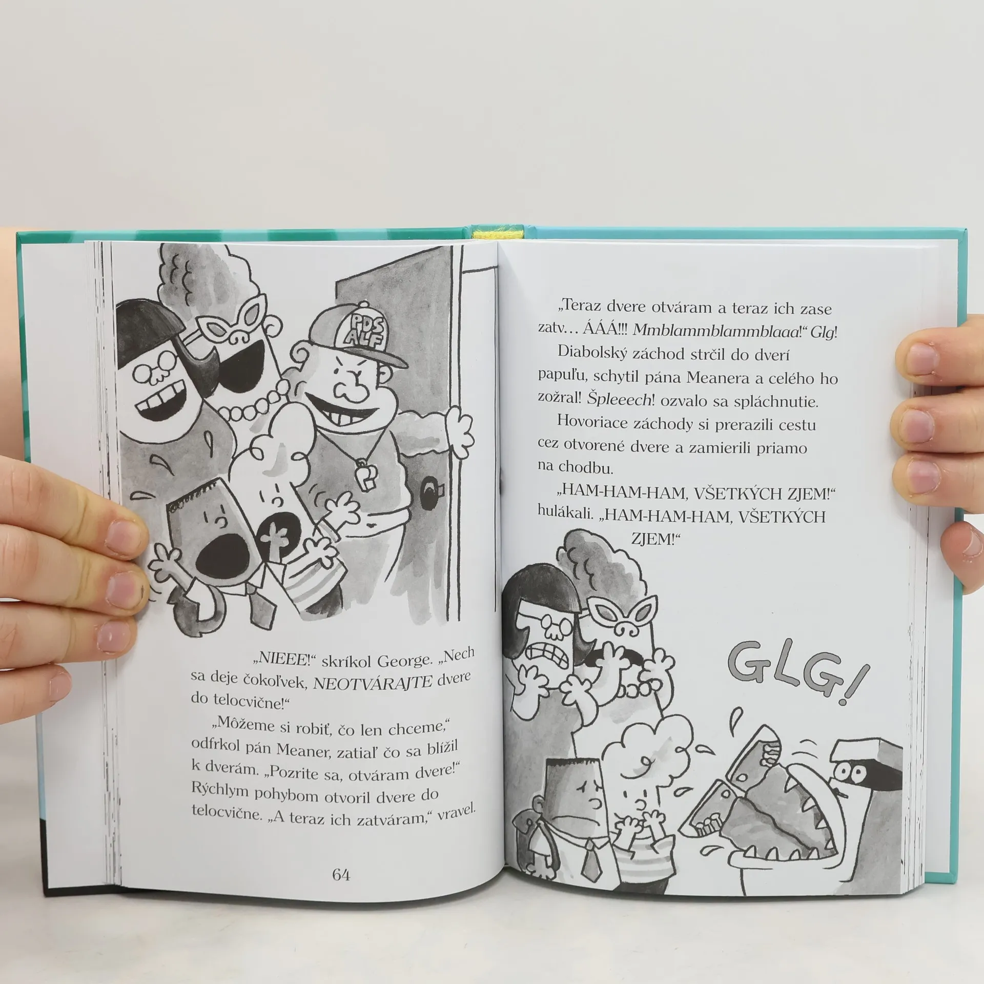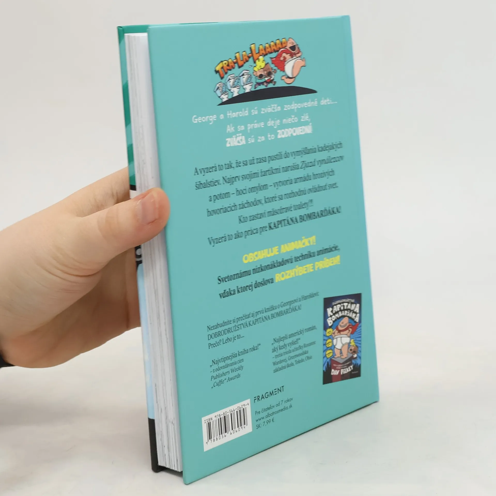 George a Harold sú zväčša zodpovední chlapci… Ak sa práve deje niečo zlé, zväčša sú za to zodpovední! A vyzerá to tak, že už zasa vymýšľajú. Najprv svojimi žartíkmi narušia Zjazd vynálezcov a potom – hoci omylom – vytvoria armádu hrozivých hovoriacich záchodov, ktoré sa rozhodnú ovládnuť svet. Kto zastaví mäsožravé toalety?! Vyzerá to ako práca pre Kapitána Bombarďáka! Prečítajte si druhý diel úžasných dobrodružstiev kapitána Bombarďáka! Jeho identita je taká utajená, že ani on sám nevie, kto vlastne je! Jedno je však isté – tento nebojácny superhrdina sa neváha postaviť zloduchom a odvážne bojuje za pravdu, spravodlivosť a za všetko nesprateľné a bavlnené! Váľanie po zemi zaručené!