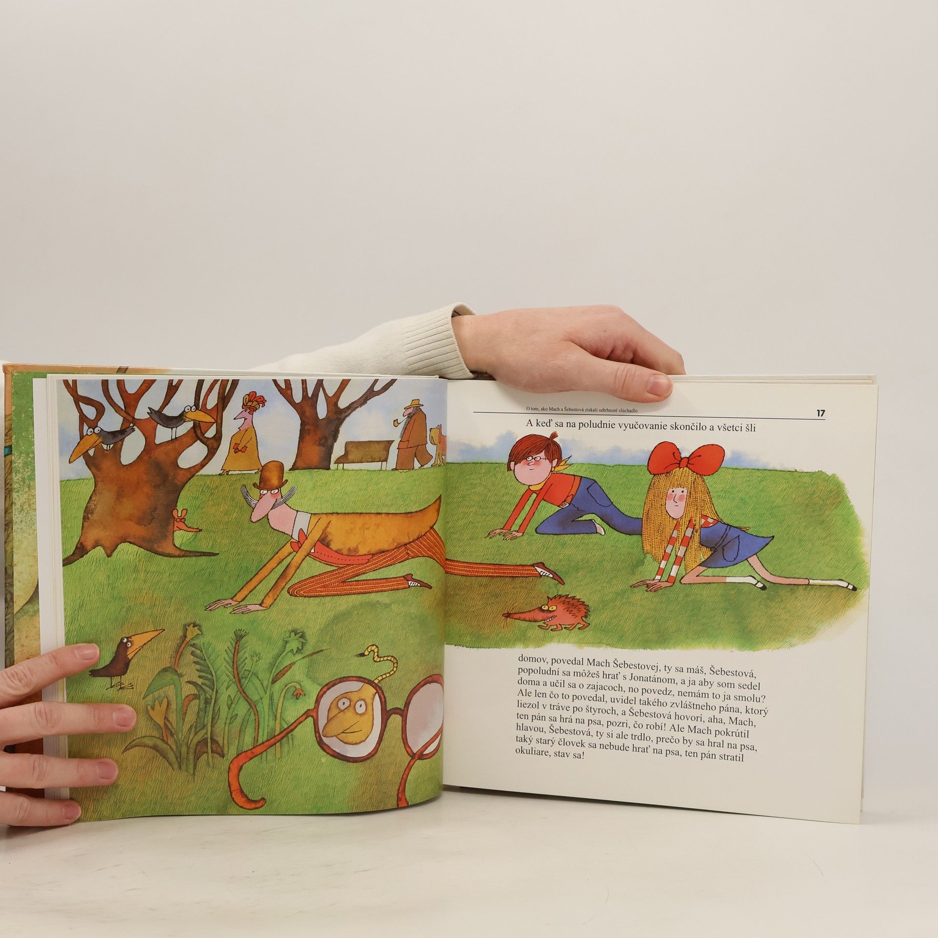 V škole nemusí byť nuda... Deti aj dospelí si v televíznom večerníčku a neskôr aj v knihe obľúbili postavičky dvoch podnikavých školákov Macha a Šebestovej, ich kamaráta psa Jonatána, triedne učiteľky, spolužiakov a všetkých ostatných z domu a mesta, kde sa dej odohráva. Tentoraz žiaci 3.B v siedmich humorných kapitolách pomocou čarovného slúchadla premenia psa Jonatána na chlapca a vezmú ho na školský výlet, vyberú sa do doby ľadovej a privedú odtiaľ človeka neandertálskeho ako názornú školskú pomôcku a zažijú mnoho ďalších príhod.