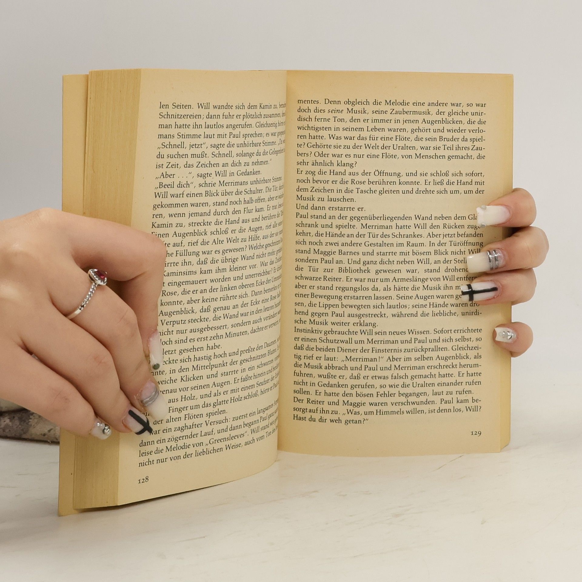 »Es blieb keine Zeit mehr, sich zu fürchten. Will stand allein. Und die hohe schwarze Säule umschloß ihn mit all den ungeheuerlichen Kräften, die die Finsternis in dem kreisenden Nebel angesammelt hatte. In ihrer Mitte bäumte sich das schwarze Pferd mit dem schwarzen Reiter, dessen Augen wie blaue Funken brannten.«