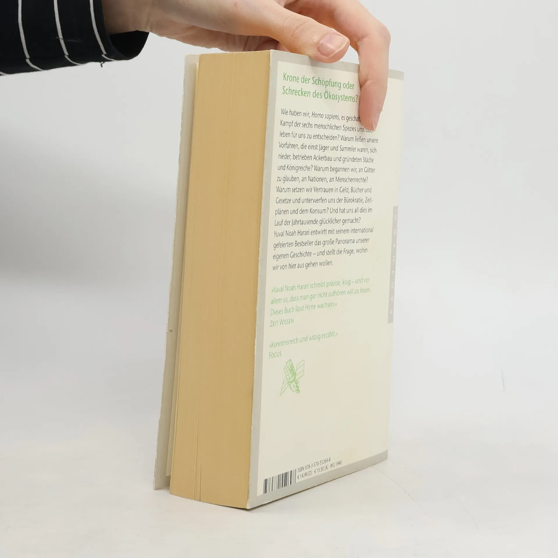 Der Mensch: Krone der Schöpfung oder Schrecken des Ökosystems? Wie gelang es Homo Sapiens, den Überlebenskampf gegen andere menschliche Spezies zu gewinnen? Warum wandten sich unsere Vorfahren von Jägern und Sammlern zu Ackerbau, Städten und Königreichen? Was führte zu unserem Glauben an Götter, Nationen und Menschenrechte? Warum vertrauen wir auf Geld, Bücher und Gesetze und unterwerfen uns Bürokratie und Konsum? Hat uns dieser Wandel glücklicher gemacht? Vor 100.000 Jahren war Homo sapiens ein unbedeutendes Tier in Afrika, das mit fünf anderen menschlichen Spezies lebte. Ihr Einfluss auf das Ökosystem war vergleichbar mit dem von Gorillas oder Quallen. Vor 70.000 Jahren jedoch vollzog sich ein rascher Wandel, der Homo sapiens zur dominierenden Spezies und zum Schrecken des Ökosystems machte, vor allem aufgrund der besonderen Beschaffenheit seines Gehirns. Diese Vorherrschaft hat sich bis heute verstärkt: Der Mensch hat die Fähigkeit zu schöpferischem und destruktivem Handeln wie kein anderes Lebewesen. Jetzt steht die Menschheit an einem entscheidenden Punkt, an dem sie ihren zukünftigen Weg wählen muss. Internationaler Bestseller – in fast 40 Sprachen übersetzt. Harari schreibt präzise und fesselnd, was das Lesen zu einem Erlebnis macht. Sein Meisterwerk verbindet große historische Ereignisse mit der Kraft von Ideen.