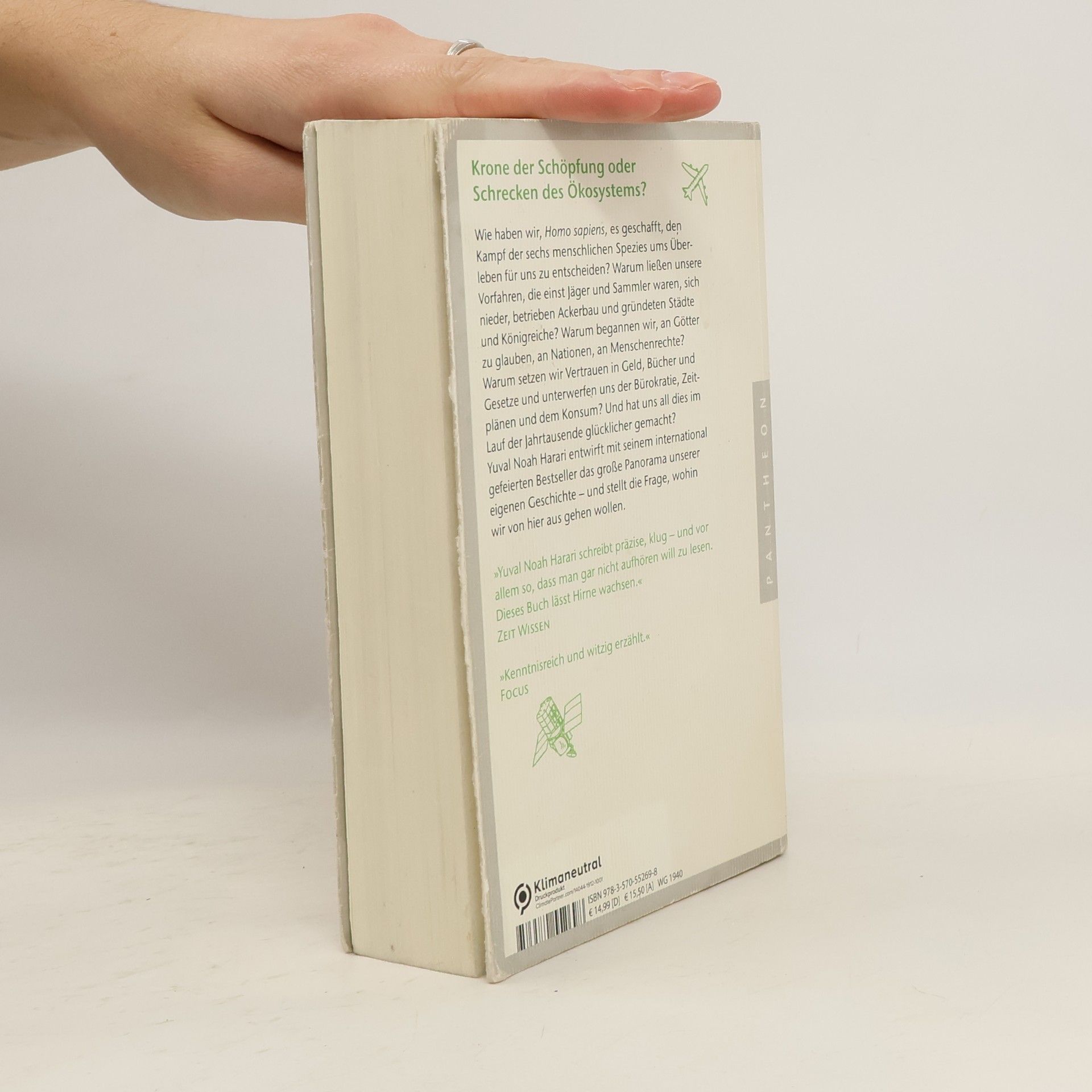 Der Mensch: Krone der Schöpfung oder Schrecken des Ökosystems? Wie gelang es Homo Sapiens, den Überlebenskampf gegen andere menschliche Spezies zu gewinnen? Warum wandten sich unsere Vorfahren von Jägern und Sammlern zu Ackerbau, Städten und Königreichen? Was führte zu unserem Glauben an Götter, Nationen und Menschenrechte? Warum vertrauen wir auf Geld, Bücher und Gesetze und unterwerfen uns Bürokratie und Konsum? Hat uns dieser Wandel glücklicher gemacht? Vor 100.000 Jahren war Homo sapiens ein unbedeutendes Tier in Afrika, das mit fünf anderen menschlichen Spezies lebte. Ihr Einfluss auf das Ökosystem war vergleichbar mit dem von Gorillas oder Quallen. Vor 70.000 Jahren jedoch vollzog sich ein rascher Wandel, der Homo sapiens zur dominierenden Spezies und zum Schrecken des Ökosystems machte, vor allem aufgrund der besonderen Beschaffenheit seines Gehirns. Diese Vorherrschaft hat sich bis heute verstärkt: Der Mensch hat die Fähigkeit zu schöpferischem und destruktivem Handeln wie kein anderes Lebewesen. Jetzt steht die Menschheit an einem entscheidenden Punkt, an dem sie ihren zukünftigen Weg wählen muss. Internationaler Bestseller – in fast 40 Sprachen übersetzt. Harari schreibt präzise und fesselnd, was das Lesen zu einem Erlebnis macht. Sein Meisterwerk verbindet große historische Ereignisse mit der Kraft von Ideen.