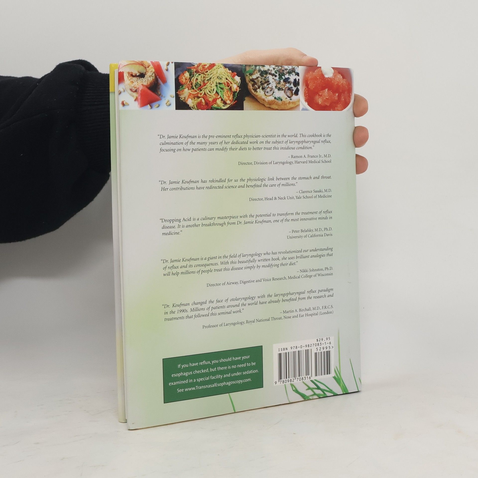 Dropping Acid: The Reflux Diet Cookbook & Cure is the first book to explain how acid reflux, particularly silent reflux, is related to dietary and lifestyle factors. It also explains how and why the reflux epidemic is related to the use of acid as a food preservative. Dr. Koufman defines the symptoms this shockingly common disease and explains why a change in diet can alleviate some of the most common symptoms. Dropping Acid offers a dietary cure for acid reflux, as well as lists of the best and worst foods for a reflux sufferer. The book’s recipes use tasty fats as flavorings, not as main ingredients; included are the recipes for tasty dishes that prove living with reflux doesn't mean living without delicious food.