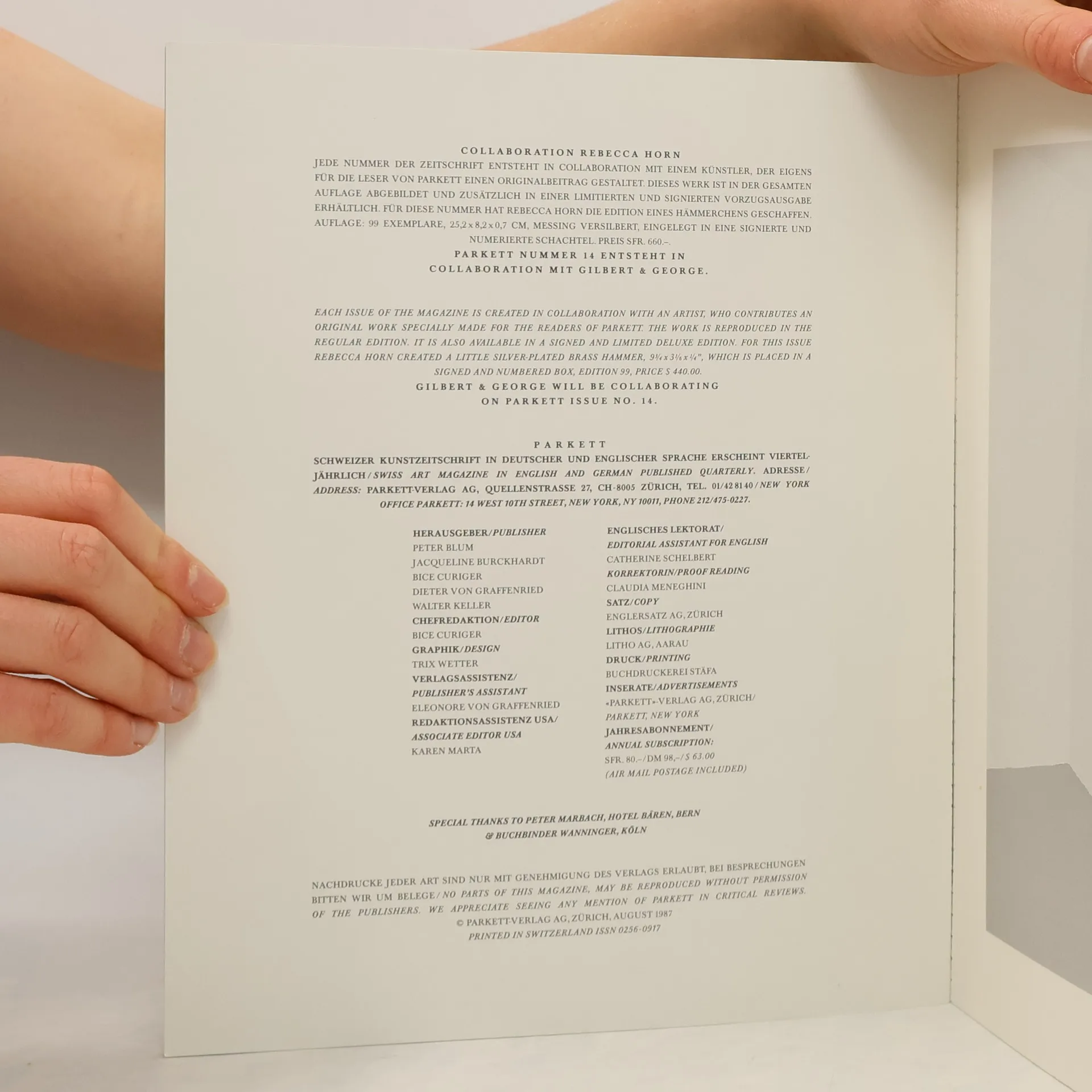 Parkett 13/1987, Autorenkollektiv