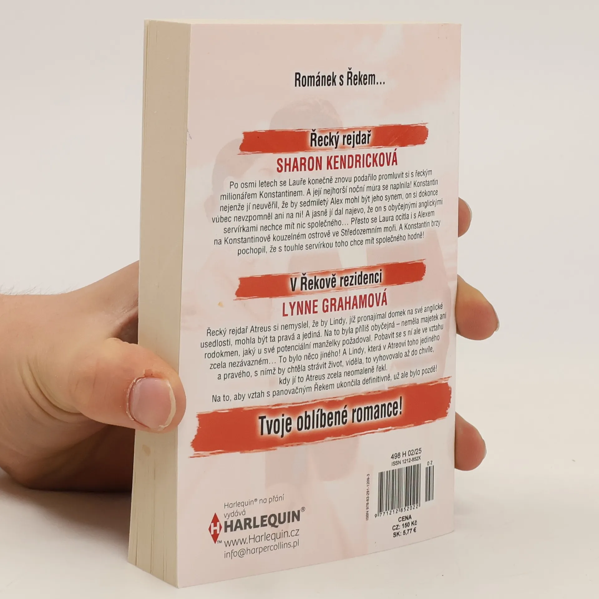 Řecký rejdař Po osmi letech se Lauře konečně znovu podařilo promluvit si s řeckým milionářem Konstantinem. A její nejhorší noční můra se naplnila! Konstantin nejenže jí neuvěřil, že by sedmiletý Alex mohl být jeho synem, on si dokonce vůbec nevzpomněl ani na ni! A jasně jí dal najevo, že on s obyčejnými anglickými servírkami nechce mít nic společného… Přesto se Laura ocitla i s Alexem na Konstantinově kouzelném ostrově ve Středozemním moři. A Konstantin brzy pochopil, že s touhle servírkou toho chce mít společného hodně! V Řekově rezidenci Řecký rejdař Atreus si nemyslel, že by Lindy, jíž pronajímal domek na své anglické usedlosti, mohla být ta pravá a jediná. Na to byla příliš obyčejná – neměla majetek ani rodokmen, jaký u své potenciální manželky požadoval. Pobavit se s ní ale ve vztahu zcela nezávazném… To bylo něco jiného! A Lindy, která v Atreovi toho jediného a pravého, s nímž by chtěla strávit život, viděla, to vyhovovalo až do chvíle, kdy jí to Atreus zcela neomaleně řekl. Na to, aby vztah s panovačným Řekem ukončila definitivně, už ale bylo pozdě!