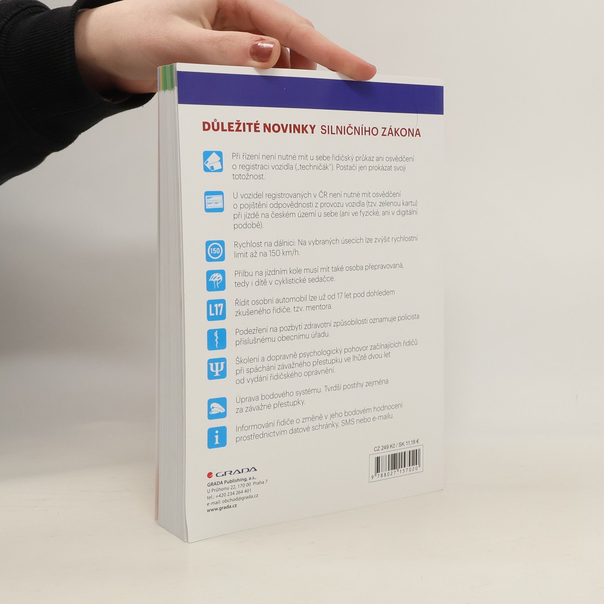 Nové vydání učebnice autoškoly obsahuje vše, co nezbytně potřebujete k získání řidičského oprávnění skupiny B: výklad pomocí názorných barevných fotografií, snadnou navigaci v knize pomocí hmatníků, kapitoly členěné podle předmětů v autoškole, ukázkové testy i praktické rady. Najdete zde všechna podstatná ustanovení zákona 361/2000 Sb. o provozu na pozemních komunikacích a souvisejících předpisů, výklad křižovatek včetně vysvětlení, informace o ovládání a údržbě vozidla, o bezpečné jízdě a zdravotnické přípravě.