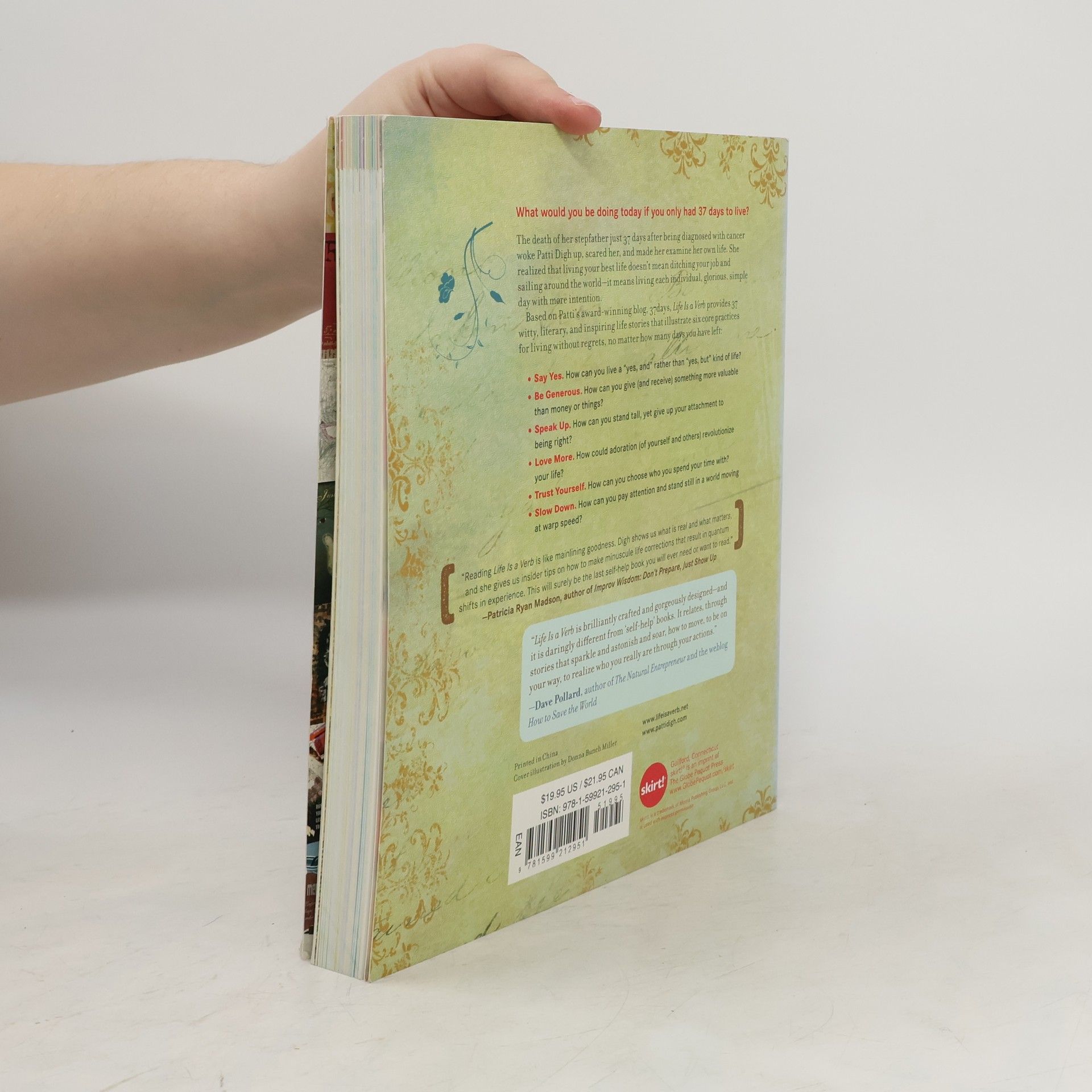 In October 2003, Patti Digh's stepfather was diagnosed with lung cancer. He died 37 days later. The timeframe made an impression on her. What emerged was a commitment to ask herself every morning: What would I be doing today if I had only 37 days left to live? The answers changed her life and led to this new kind of book. Part meditation, part how-to guide, part memoir, Life is a Verb is all heart.Within these pages, Digh identifies six core practices to jump-start a meaningful life: Say Yes, Trust Yourself, Slow Down, Be Generous, Speak Up, and Love More. Within this framework she supplies 37 edgy, funny, and literary life stories, each followed by a 'do it now' 10-minute exercise as well as a practice to try for 37 days - and perhaps the rest of your life.
