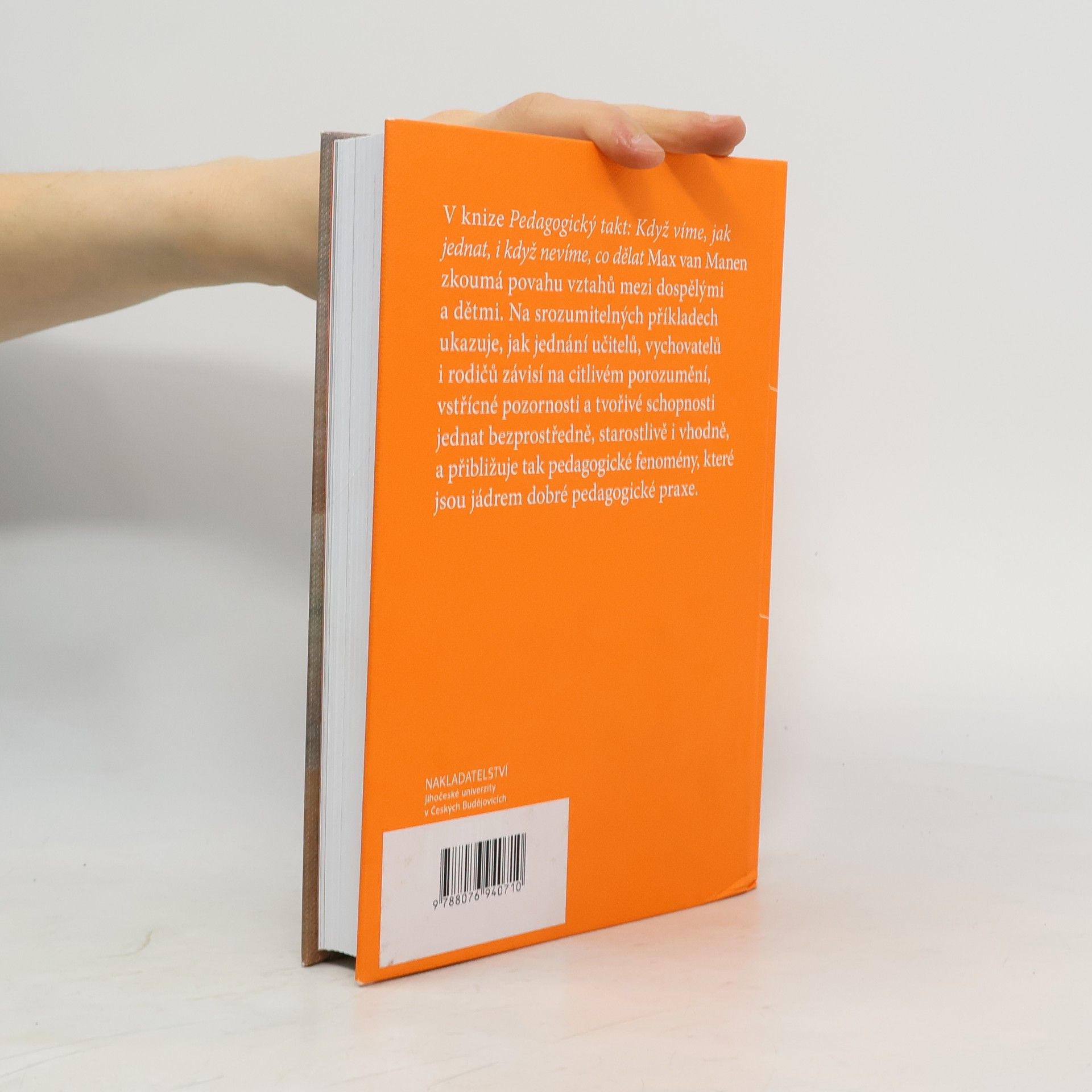 V knize Pedagogický takt: Když víme, jak jednat, i když nevíme, co dělat Max van Manen zkoumá povahu vztahů mezi dospělými a dětmi. Na srozumitelných příkladech ukazuje, jak jednání učitelů, vychovatelů i rodičů závisí na citlivém porozumění, vstřícné pozornosti a tvořivé schopnostijednat bezprostředně, starostlivě i vhodně, a přibližuje tak pedagogické fenomény, které jsou jádrem dobré pedagogické praxe.