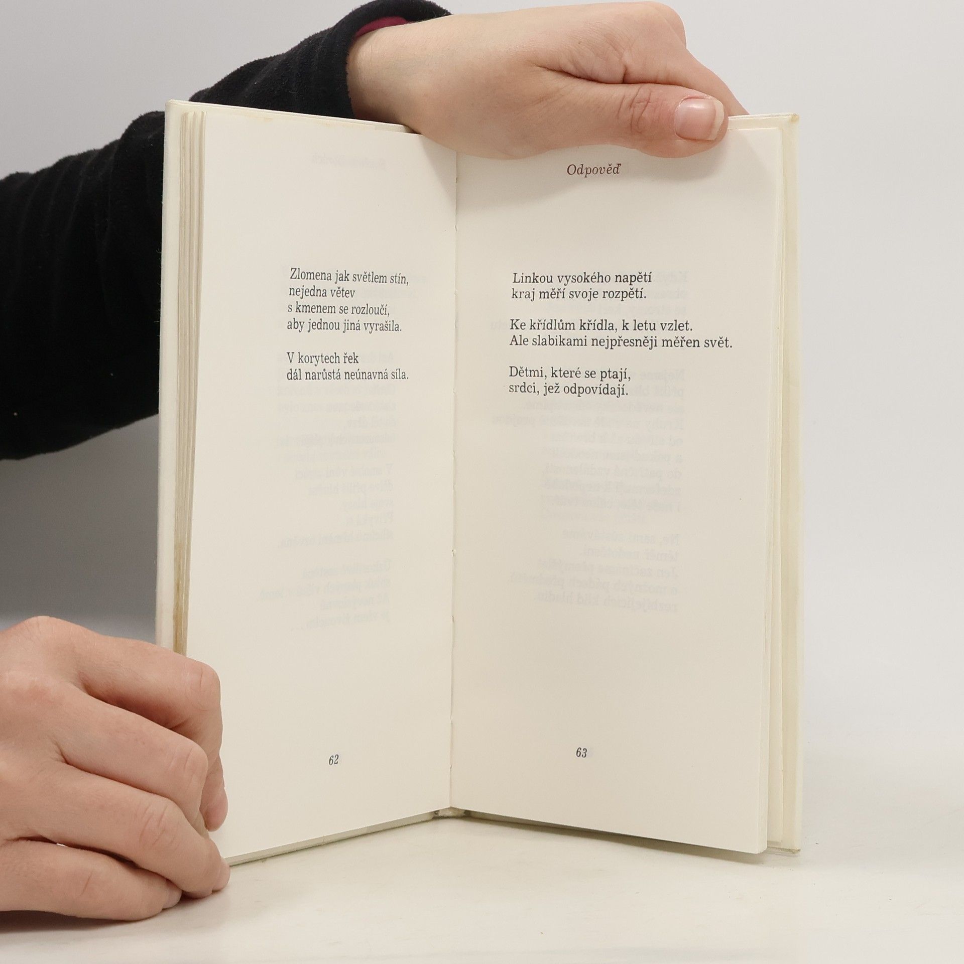 Zásahy : A zase jsme bezbranní, jak žena a muž mohou být. Zase jsme plni zásahů, a přece jeden druhým znovu pronikáme. Večer jsem tvým ránem, ráno pulsem noci. Sílíme i slábnem, slábnem bez pomoci.