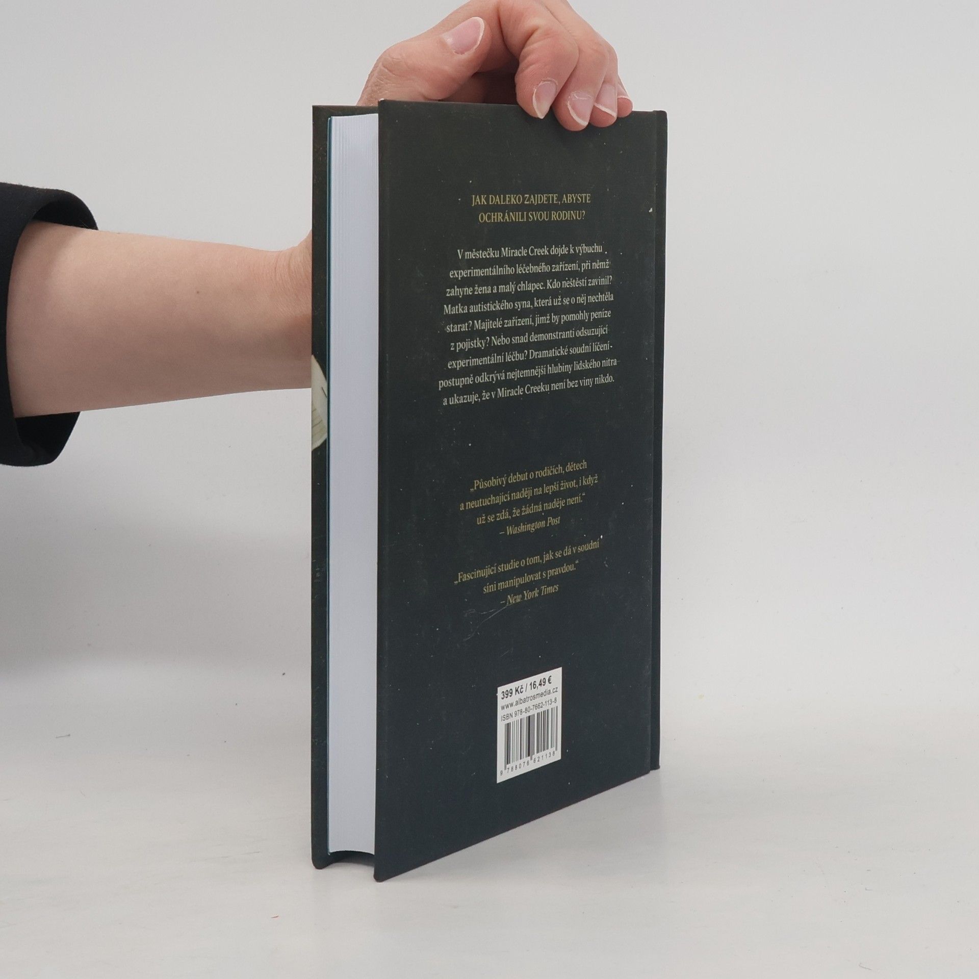 Jak daleko zajdete, abyste ochránili svou rodinu? V městečku Miracle Creek dojde k výbuchu experimentálního léčebného zařízení, při němž zahyne žena a malý chlapec. Kdo neštěstí zavinil? Matka autistického syna, která už se o něj nechtěla starat? Majitelé zařízení, jimž by pomohly peníze z pojistky? Nebo snad demonstranti odsuzující experimentální léčbu? Dramatické soudní líčení postupně otevírá nejtemnější hlubiny lidského nitra a ukazuje, že v Miracle Creeku není bez viny nikdo. Na pozadí soudního dramatu autorka zkoumá, jak pevné, nebo naopak křehké mohou být rodinné vazby a co znamená být odlišný – ať už rasou, mentální poruchou nebo zdravotními problémy. Debut Angie Kimové vzbudil mezi čtenáři ohromný ohlas, práva na knihu se prodala do více než patnácti zemí a firma Paramount získala filmová práva. Kniha se dočkala několika ocenění za nejlepší debut roku a v mnoha periodikách se objevila ve výběru těch nejlepších knih roku 2019. Z angličtiny přeložila Adéla Špínová.