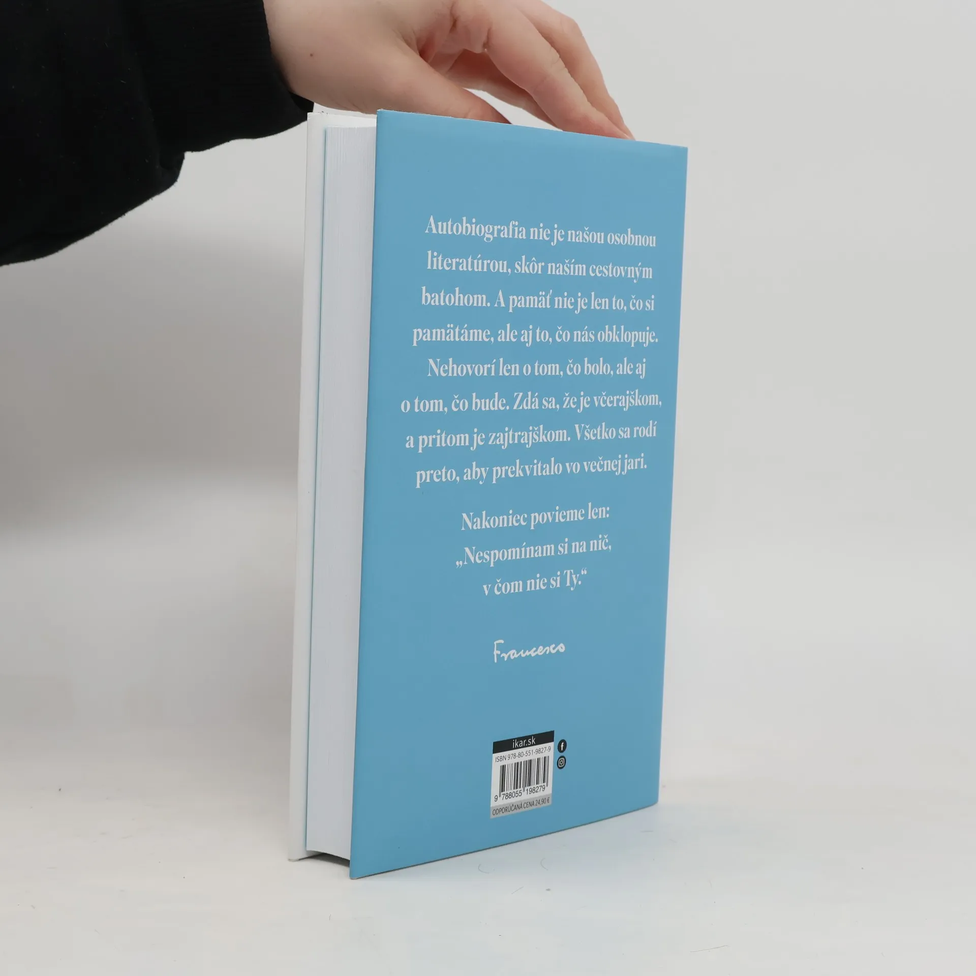 Želaním pápeža Františka bolo, aby tento výnimočný text uzrel svetlo sveta až po jeho smrti. Nové Jubileum nádeje a okolnosti doby ho však priviedli k rozhodnutiu, aby tento vzácny rukopis zverejnil už teraz. Vychádza začiatkom roka 2025 súčasne v 80 krajinách sveta. NÁDEJ je prvou autobiografiou, ktorú kedy pápež v histórii vydal počas života. Pápež František jej písaniu venoval posledných šesť rokov a podrobne v nej spomína na celý svoj život, počnúc talianskymi koreňmi a dobrodružnou emigráciou jeho predkov do Latinskej Ameriky, cez detstvo, celú kňazskú službu, až po rozprávanie o takmer dvanástich rokoch pontifikátu. Tieto dojímavé a veľmi ľudské memoáre, bohaté na odhalenia, anekdoty a poučné úvahy, sú "románom života" a zároveň morálnym a duchovným testamentom, ktorý má ambíciu zaujať čitateľov na celom svete a byť odkazom nádeje pre budúce generácie.