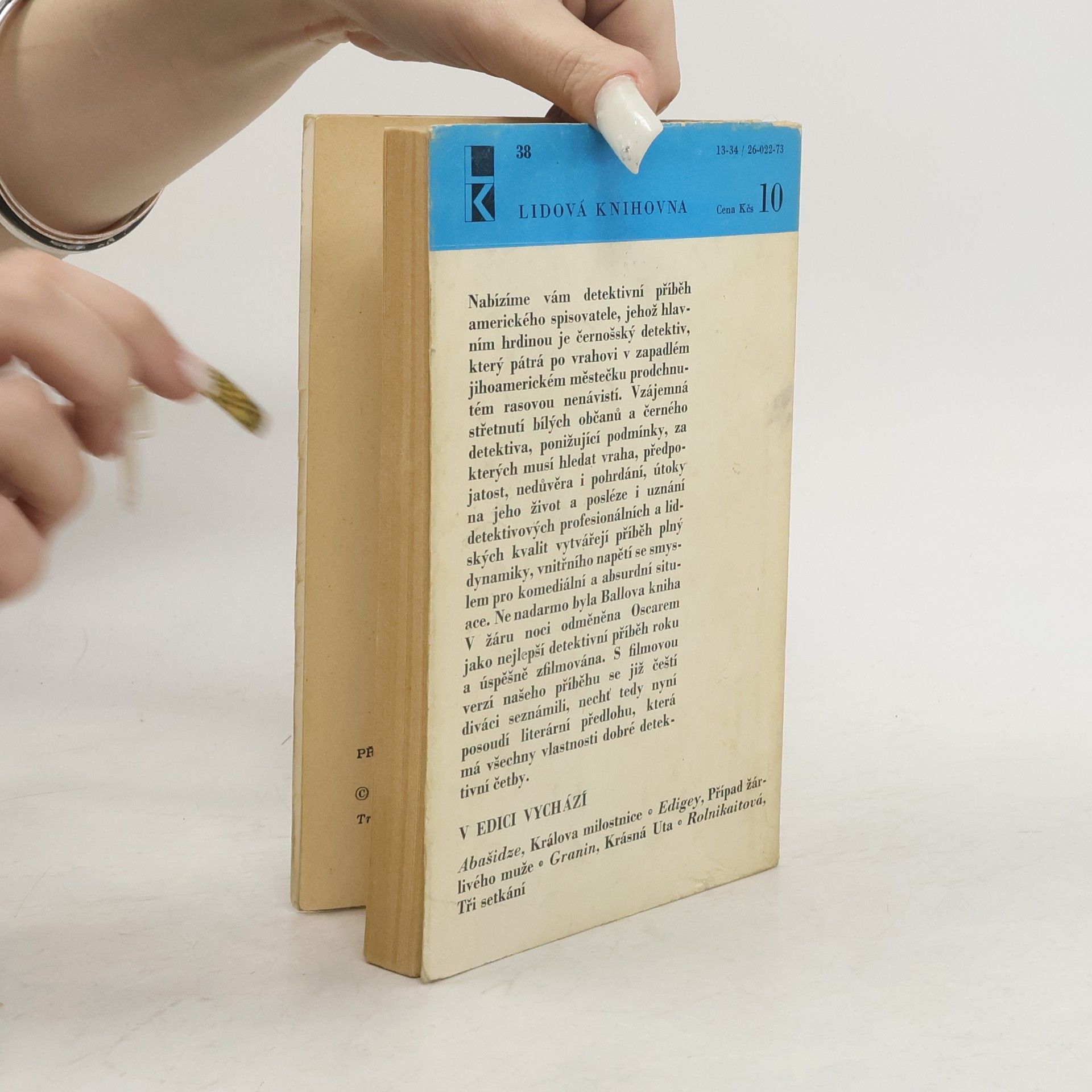 Hrdinou detektivního příběhu amerického spisovatele Johna Balla je černošský policejní inspektor Virgil Tibbs, který řeší v jihoamerickém městečku vraždu známého dirigenta a přitom s promyšlenou psychologií, osobní statečností a velkorysostí čelí rasovým předsudkům, ponižování a pohrdání ze strany bílých kolegů a získává je na svou stranu. Stejnojmenný film (kde Tibbse hraje Sidney Poitier) odměnila Akademie filmového umění roku 1967 pěti Oscary.