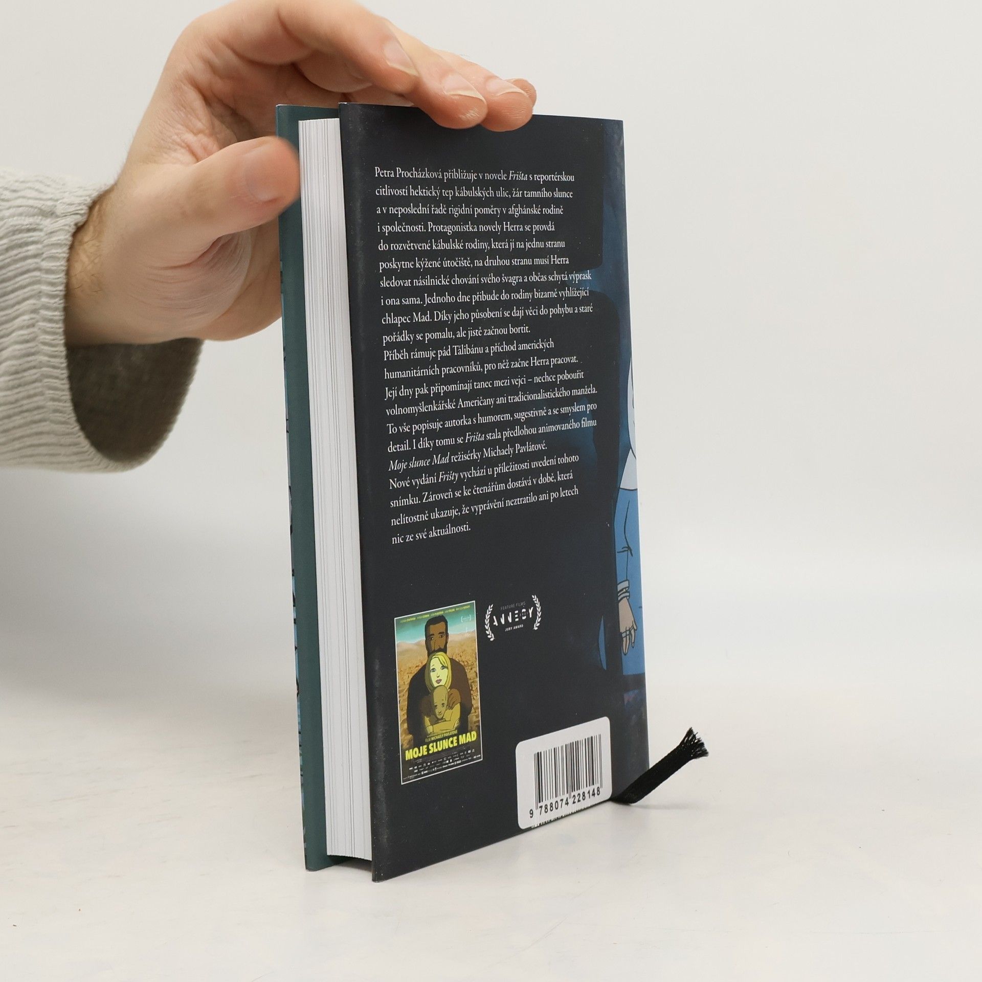 Petra Procházková přibližuje v novele Frišta s reportérskou citlivostí hektický tep kábulských ulic, žár tamního slunce a v neposlední řadě rigidní poměry v afghánské rodině i společnosti. Protagonistka novely Herra se provdá do rozvětvené kábulské rodiny, která jí na jednu stranu poskytne kýžené útočiště, na druhou stranu musí Herra sledovat násilnické chování svého švagra a občas schytá výprask i ona sama. Jednoho dne přibude do rodiny bizarně vyhlížející chlapec Mad. Díky jeho působení se dají věci do pohybu a staré pořádky se pomalu, ale jistě začnou bortit. Příběh rámuje pád Tálibánu a příchod amerických humanitárních pracovníků, pro něž začne Herra pracovat. Její dny pak připomínají tanec mezi vejci – nechce pobouřit volnomyšlenkářské Američany ani tradicionalistického manžela. To vše popisuje autorka s humorem, sugestivně a se smyslem pro detail. I díky tomu se Frišta stala předlohou animovaného filmu Moje slunce Mad režisérky Michaely Pavlátové. Nové vydání Frišty vychází u příležitosti uvedení tohoto snímku. Zároveň se ke čtenářům dostává v době, která nelítostně ukazuje, že vyprávění neztratilo ani po letech nic ze své aktuálnosti.