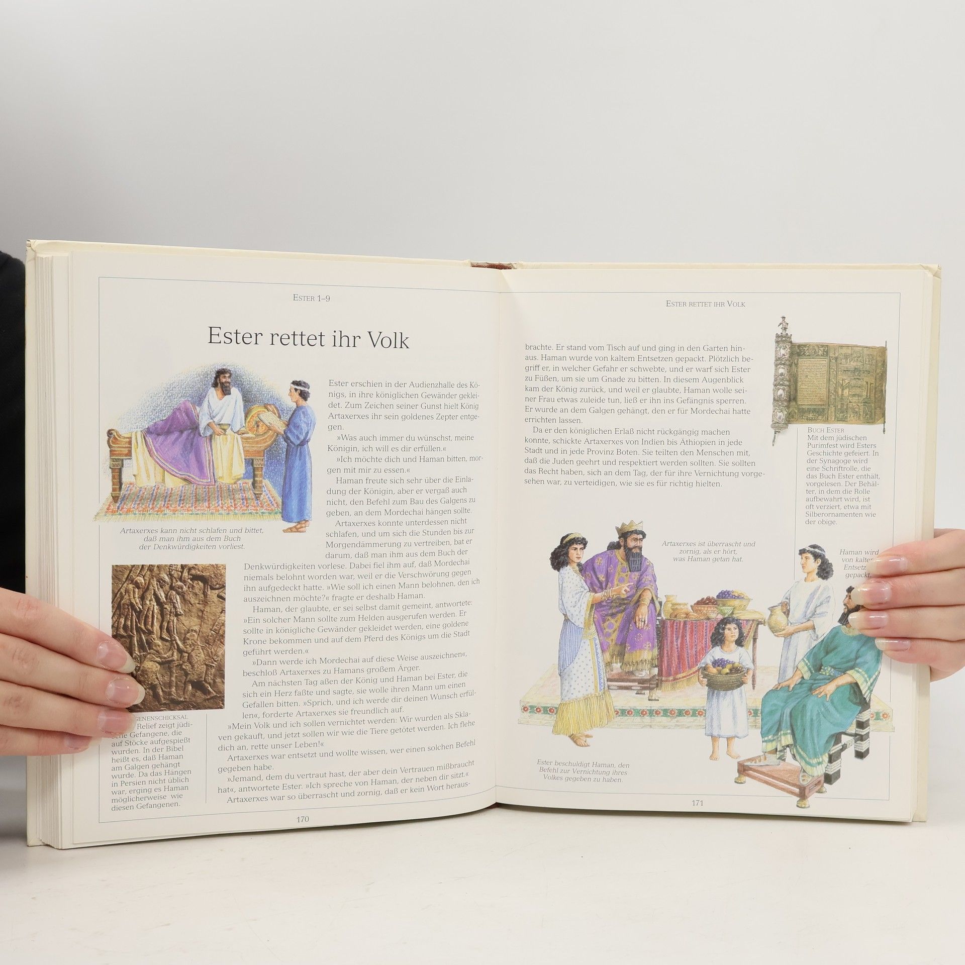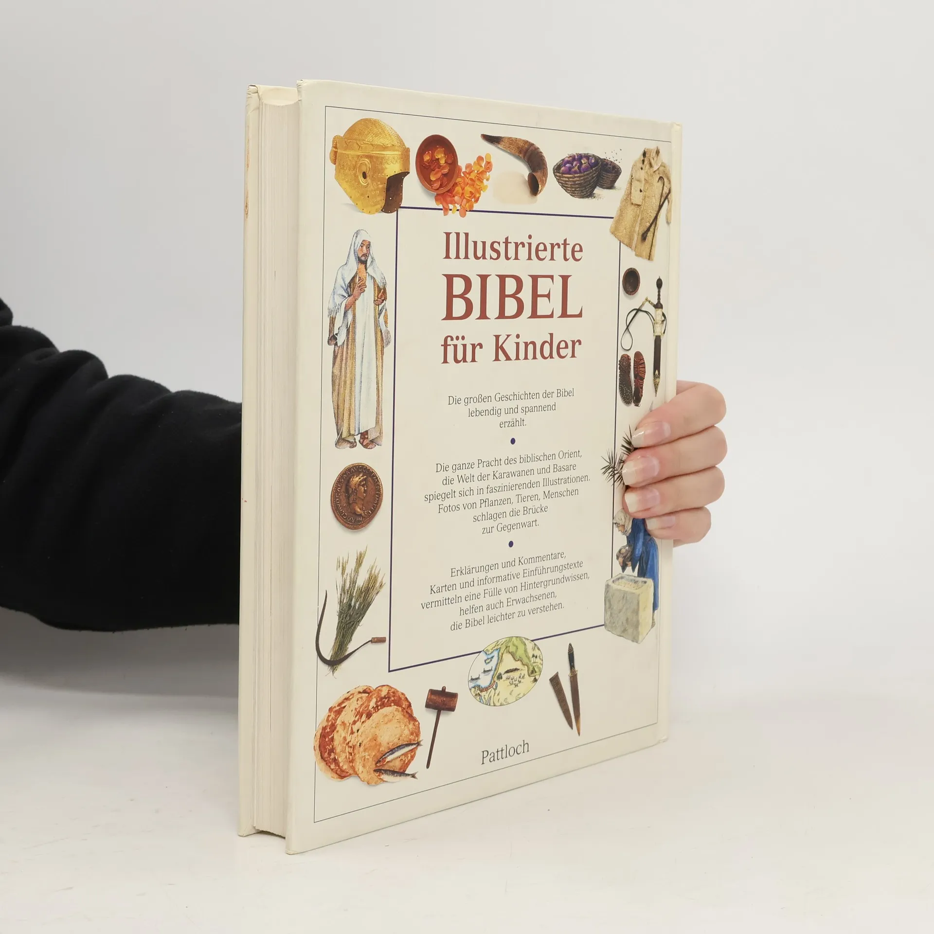 Die Geschichten der Bibel machen alle Kinder neugierig: Wie konnte Moses die Israeliten trockenen Fußes durch das Rote Meer führen? Wo liegt dieses Meer und wie sieht es heute aus? Auf über 300 Seiten finden Kinder Antworten auf ihre Fragen. Geschichten aus dem Neuen und Alten Testament zeigen in vielen Bildern, was damals geschah. Dazu gibt es prächtige Landkarten, Detail-Skizzen und zahlreiche Hintergrunds-Informationen: zum Beispiel was Frauen zur Zeit Jesu kochten. Oder wie eine Öllampe funktioniert. Besonders interessant sind auch die vielen Fotos aus heutigen Zeiten, die eine Brücke zur Gegenwart schlagen. Karawanen und Basare, Pflanzen, Tiere und die Menschen in ihrer traditionellen Kleidung: die ganze Pracht des biblischen Orient erweckt dieses Buch zu neuem Leben. Ein einzigartiges Konzept für eine Kinder-Bibel, das auch Erwachsene mit seiner Fülle an interessanten Kommentaren begeistert!