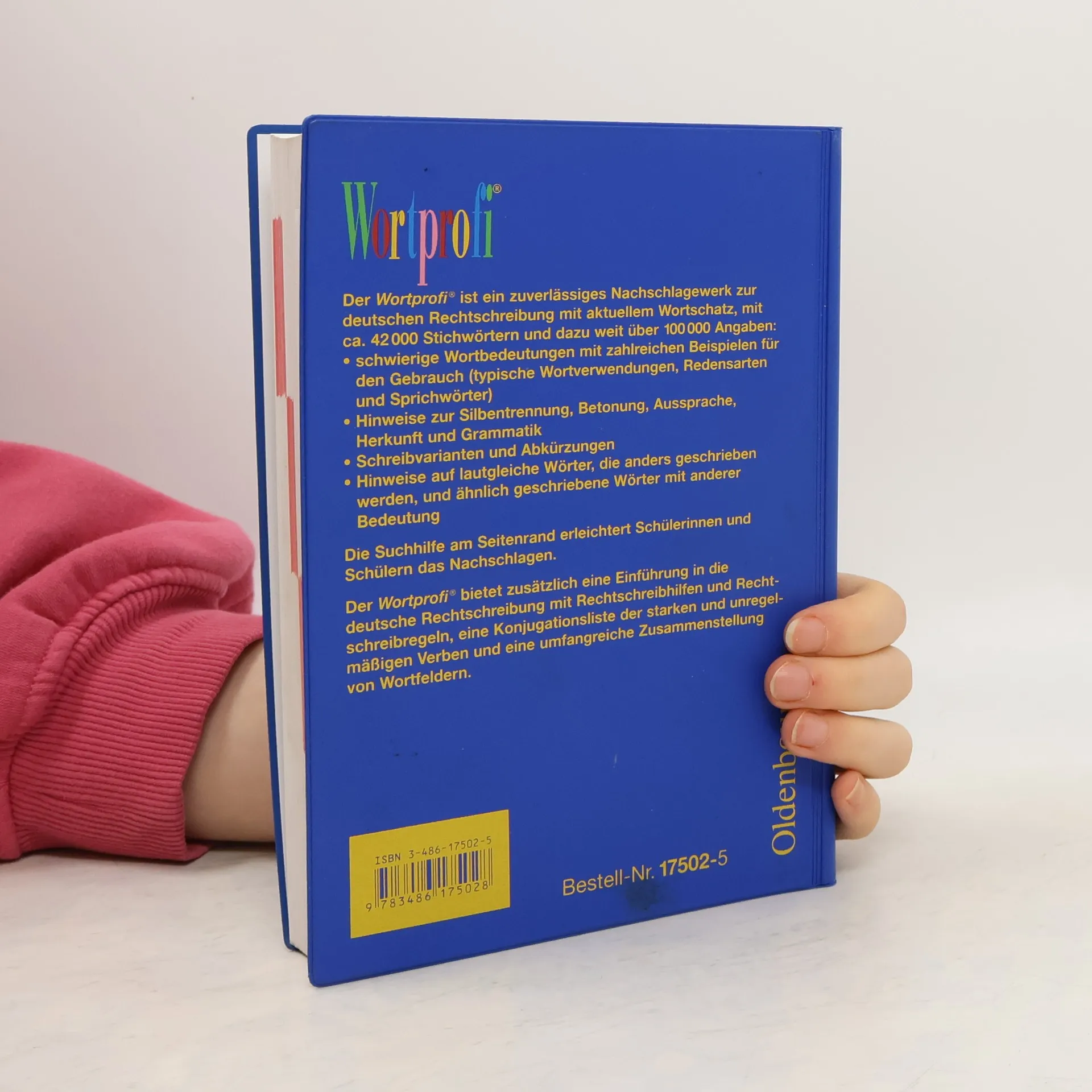Der 'Wortprofi®' ist ein zuverlässiges Nachschlagewerk zur deutschen Rechtschreibung mit aktuellem Wortschatz, ca. 42.000 Stichwörtern und dazu über 100.000 Angaben: schwierige Wortbedeutungen mit zahlreichen Beispielen für ihren Gebrauch (typische Wortverwendungen, Redensarten, Sprichwörter) Hinweise zur Silbentrennung, Betonung, Aussprache, Herkunft und Grammatik Schreibvarianten und Abkürzungen Hinweise auf lautgleiche Wörter, die anders geschrieben werden, und ähnlich geschriebene Wörter mit anderer Bedeutung. Die Suchhilfe am Seitenrand erleichtert Schüler/-innen das Nachschlagen. Der 'Wortprofi®' bietet zusätzlich eine verständliche Einführung in die deutsche Rechtschreibung mit schülergemäßen Rechtschreibhilfen und Rechtschreibregeln, eine Konjugationstabelle für die starken und unregelmäßigen Verben sowie eine umfangreiche Zusammenstellung von Wortfeldern.