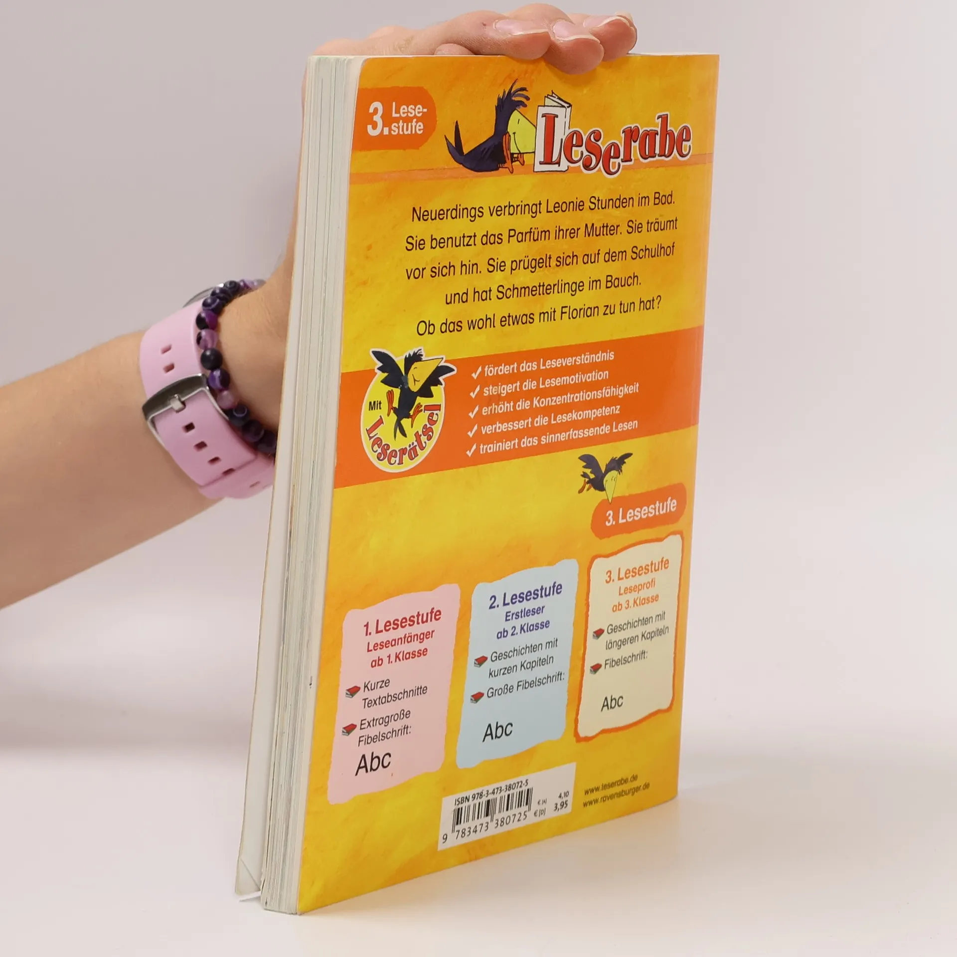 Neuerdings verbringt Leonie Stunden im Bad. Sie benutzt das Parfüm ihrer Mutter. Sie träumt vor sich hin. Sie prügelt sich auf dem Schulhof und hat so ein Kribbeln im Bauch. Ob das wohl etwas mit Florian zu tun hat? Lesen lernen wie im Flug! Die Kinderbücher der Reihe Leserabe – 3. Lesestufe wurden mit Pädagogen entwickelt und richten sich an Leseprofis ab der 3. Klasse. Durch spannende Geschichten mit längeren Kapiteln und erweitertem Wortschatz wird die Lesefähigkeit von Mädchen und Jungen ab 8 Jahren gefördert. Empfohlen von Stiftung Lesen, gelistet bei Antolin.