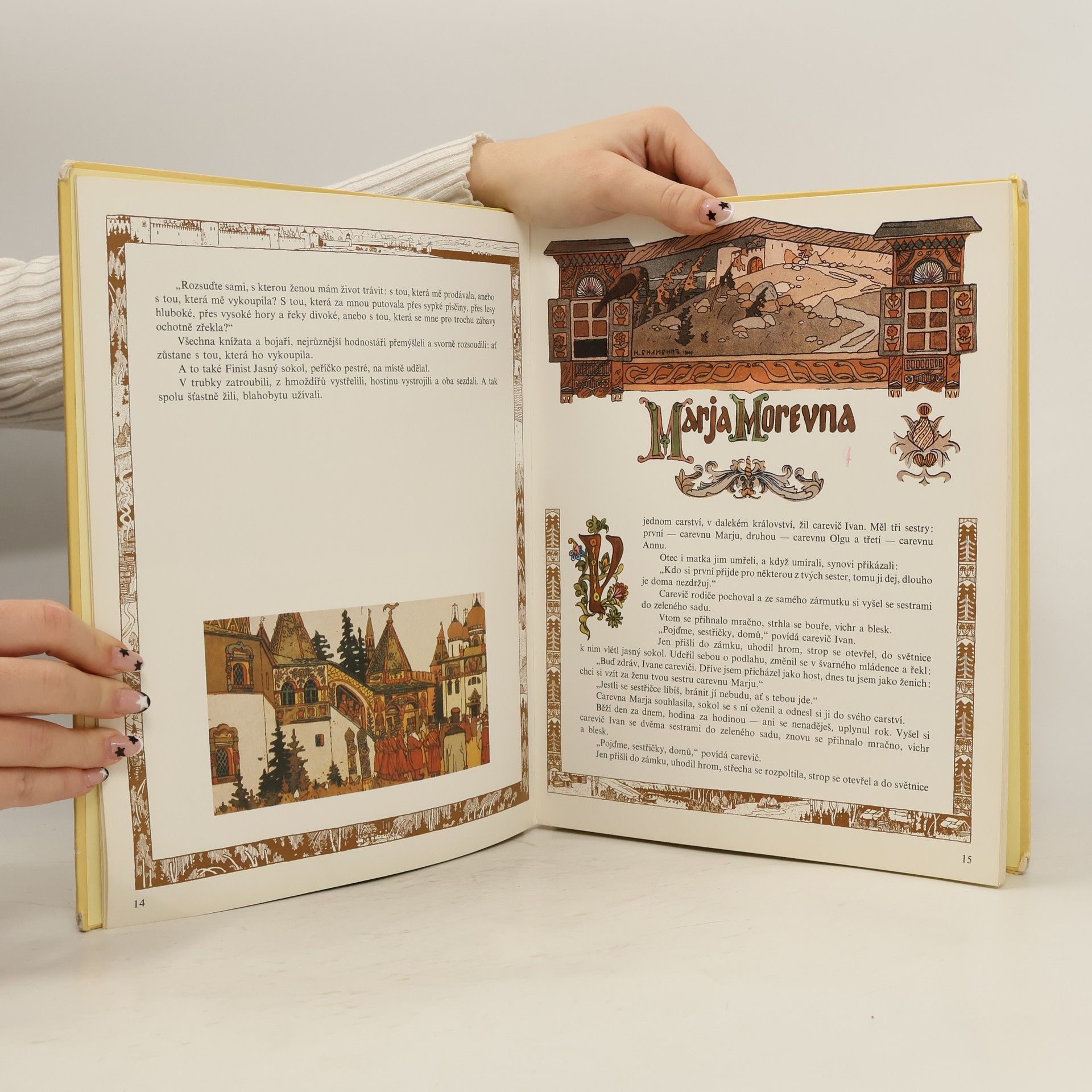 Soubor čtyř klasických ruských pohádek - Peříčko Finista Jasného sokola, Marja Morevna, Krásná Vasilisa, Žabka carevna - ve výpravném bohatě ilustrovaném vydání.