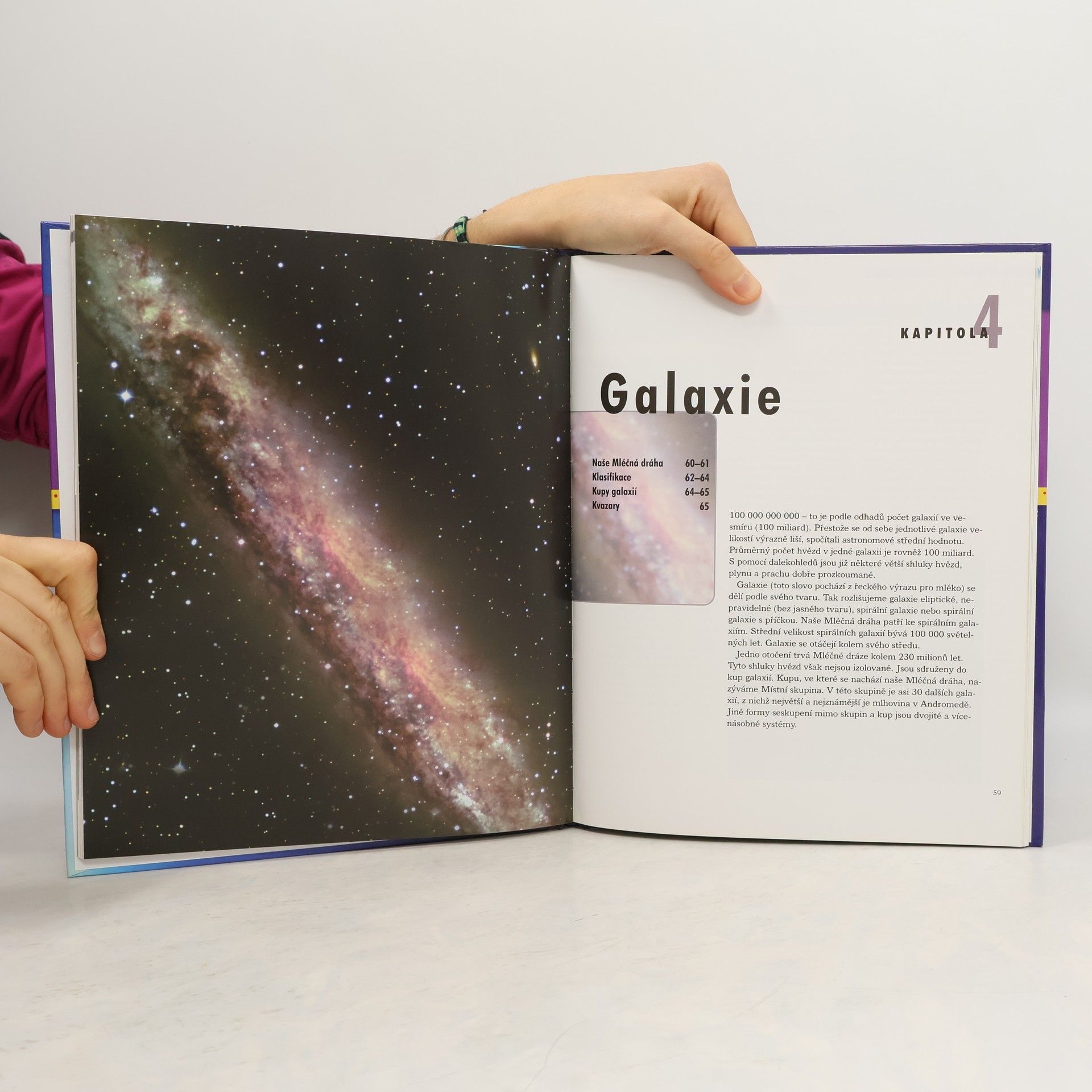 Odkud se vzala naše sluneční soustava? Co se děje při zatmění Slunce? Co je to supernova? Odpovědi na tyto a mnoho dalších otázek o vesmíru najdou děti a dospívající mládež právě v této knize. Je zde vysvětleno, co se odehrálo při Velkém třesku, jaké druhy planet, kosmických těles a hvězd existují, co jsou to souhvězdí nebo proč se mění roční období. Fungování vesmíru je zde objasněno ve světle nejnovějších poznatků z astronomie a souvisejících vědních oborů. Najdete v ní mnoho detailních barevných ilustrací, které názorně zobrazují různé tajuplné jevy – od zodiakálního světla přes otáčení Mléčné dráhy až po hvězdnou energii, a ulehčuje tak pochopení obtížnějších témat.