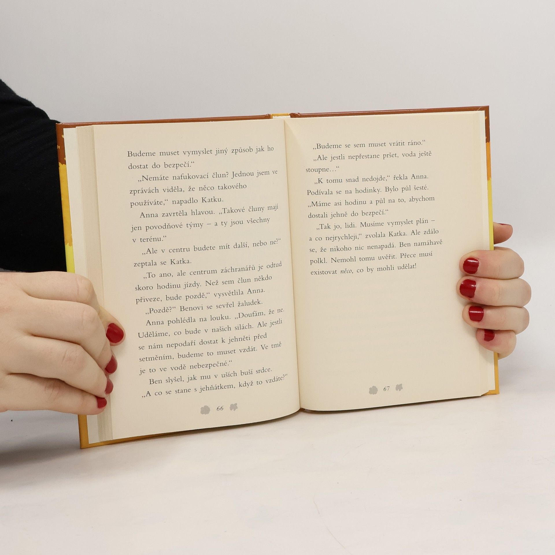 Celý týždeň prší. Riaditeľ oznámil deťom, že škola bude až do odvolania zatvorená, lebo hydrometeorologický ústav vyhlásil prvý povodňový stupeň. Ben sa teší, že bude môcť zostať doma, no po príjazde na farmu si všimne, že na vyvýšenej časti pastviny uviazlo opustené jahniatko. Treba zavolať do záchranárskeho centra… Podarí sa vrátiť jahniatko jeho zúfalej mamičke?