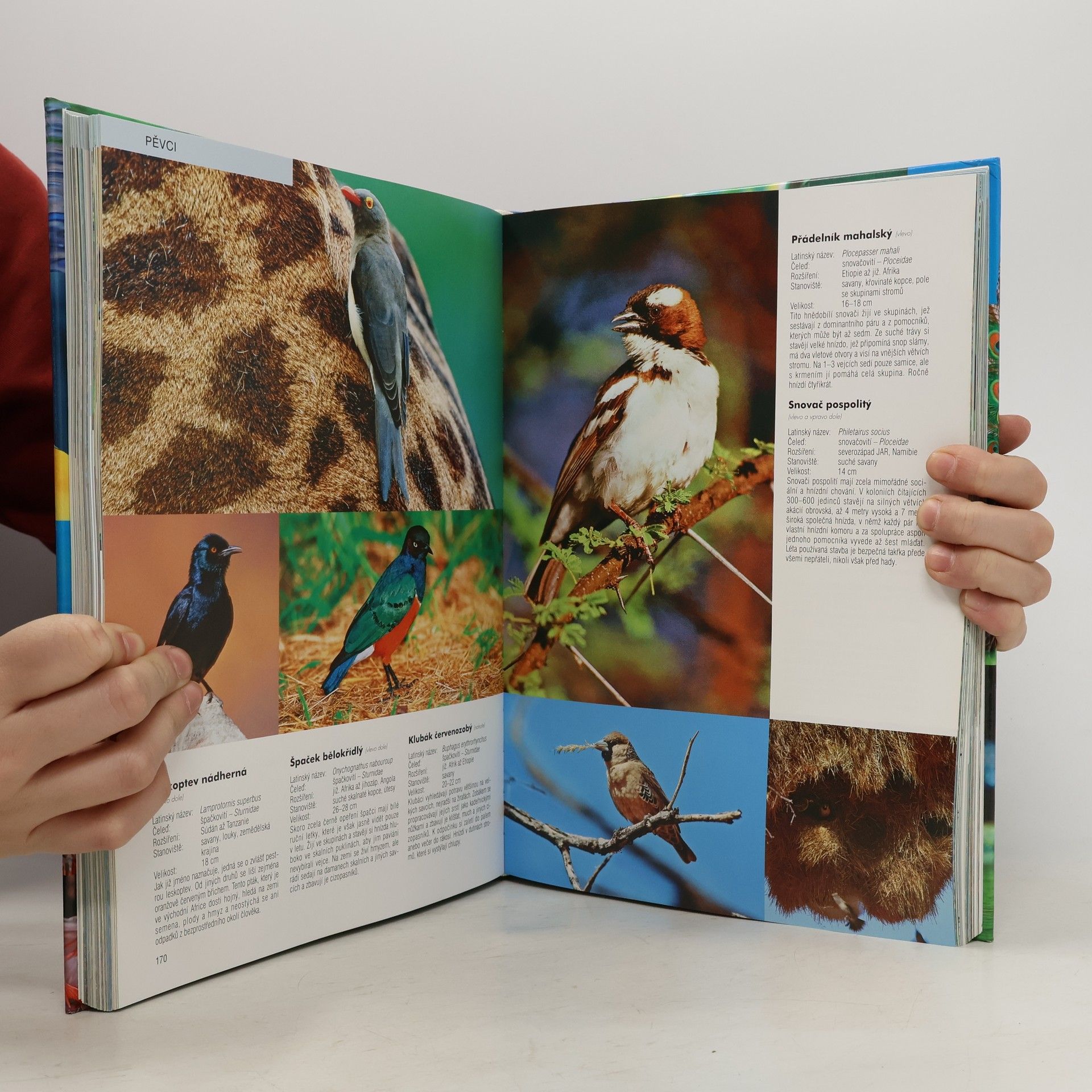 Ptáci člověka odjakživa fascinovali: po celém světě lidé obdivují jejich elegantní let, nádherné peří a líbezný zpěv. S touto knihou se vydáte na objevnou cestu pestrým světem ptáků! Fantastické barevné snímky předních fotografů představují ty nejhezčí a nejznámější ptáky všech kontinentů z té nejtěsnější blízkosti - od domáckých evropských druhů přes pestrobarevou ptačí říši jihu až po ledové oblasti Antarktidy. Získáte stručné a přehledné informace o životních prostorech ptáků, o jejich rozšíření, druhovém zařazení a velikosti. Texty odborné i zábavné zároveň nabídnou řadu zajímavostí a nových poznatků o nejdůležitějších určujících znacích, způsobu života a odchovu mláďat, ale i o typickém chování ptáků a o jejich zpěvu. Získáte zkrátka obsáhlý přehled o ptačí říši s mnoha barevnými fotografiemi. Ptáci člověka fascinovali odjakživa. Náš zájem ustavičně vzbuzuje zvláště jejich schopnost letu. A právě létání je důvodem toho, že ptáci osídlili takřka všechna stanoviště a tím vyvinuli mimořádnou rozmanitost druhů. V této knize vám představíme tisícovku z více než 9000 ptačích druhů celého světa. Velká obrazová encyklopedie přináší obsáhlý přehled o ptačí říši s nádhernými barevnými fotografiemi.