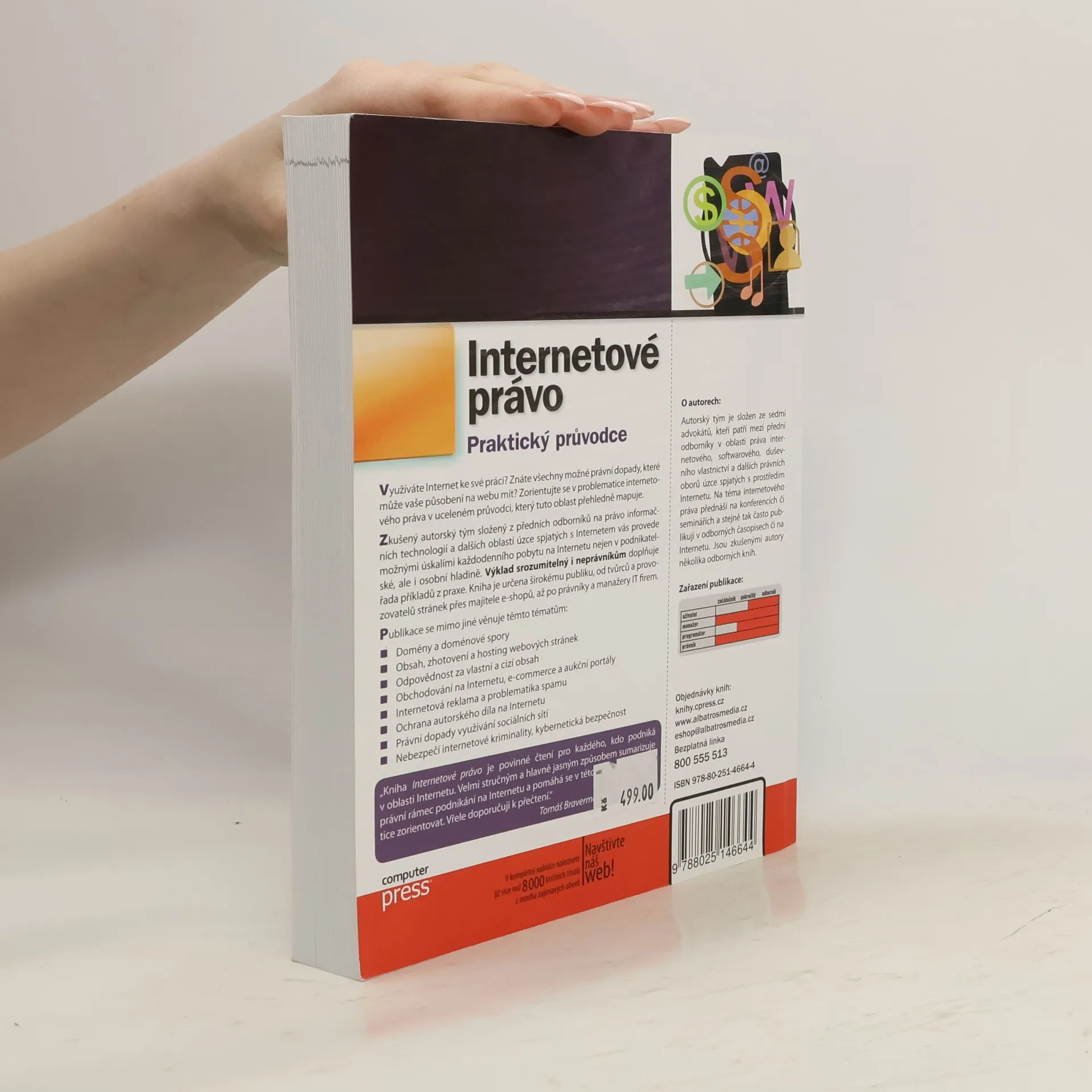 Využíváte Internet ke své práci? Znáte všechny možné právní dopady, které může vaše působení na webu mít? Zorientujte se v problematice internetového práva v uceleném průvodci, který tuto oblast přehledně mapuje. Výklad srozumitelný i neprávníkům doplňuje řada příkladů z praxe. Kniha je určena širokému publiku, od tvůrců a provozovatelů stránek přes majitele e-shopů, až po právníky a manažery IT firem.