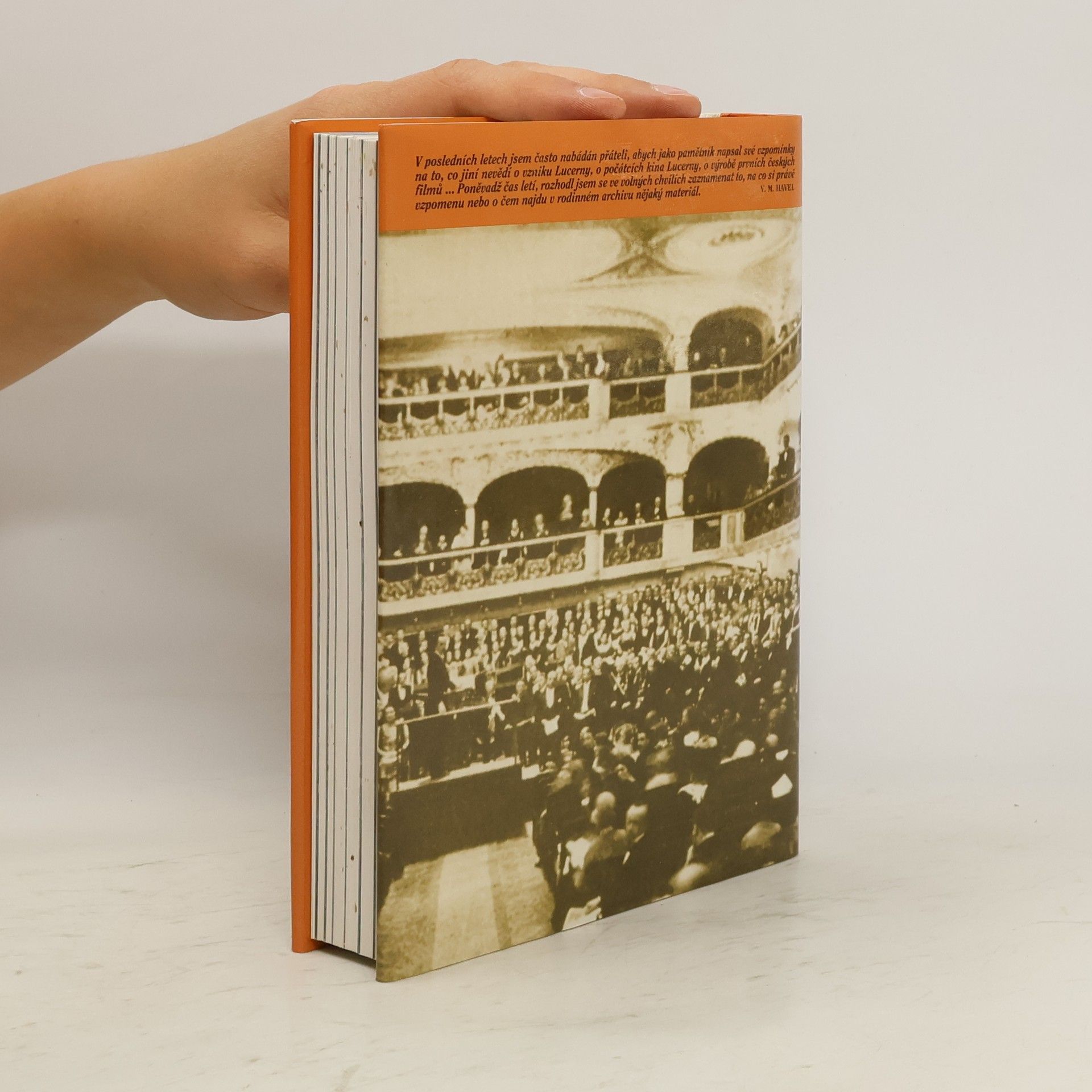 Vzpomínky na vznik Lucerny i Barrandova, na okolnosti, za nichž vznikaly první české filmy, ale především na dobu, kterou autor nazval "doba podnikatelská" - na první republiku. Úvod: Zdeněk Urbánek. Doslov: Václav a Ivan Havlovi. Ediční poznámka: Karel Palek. Ilustrace: fotografie z archivu rodiny Havlů