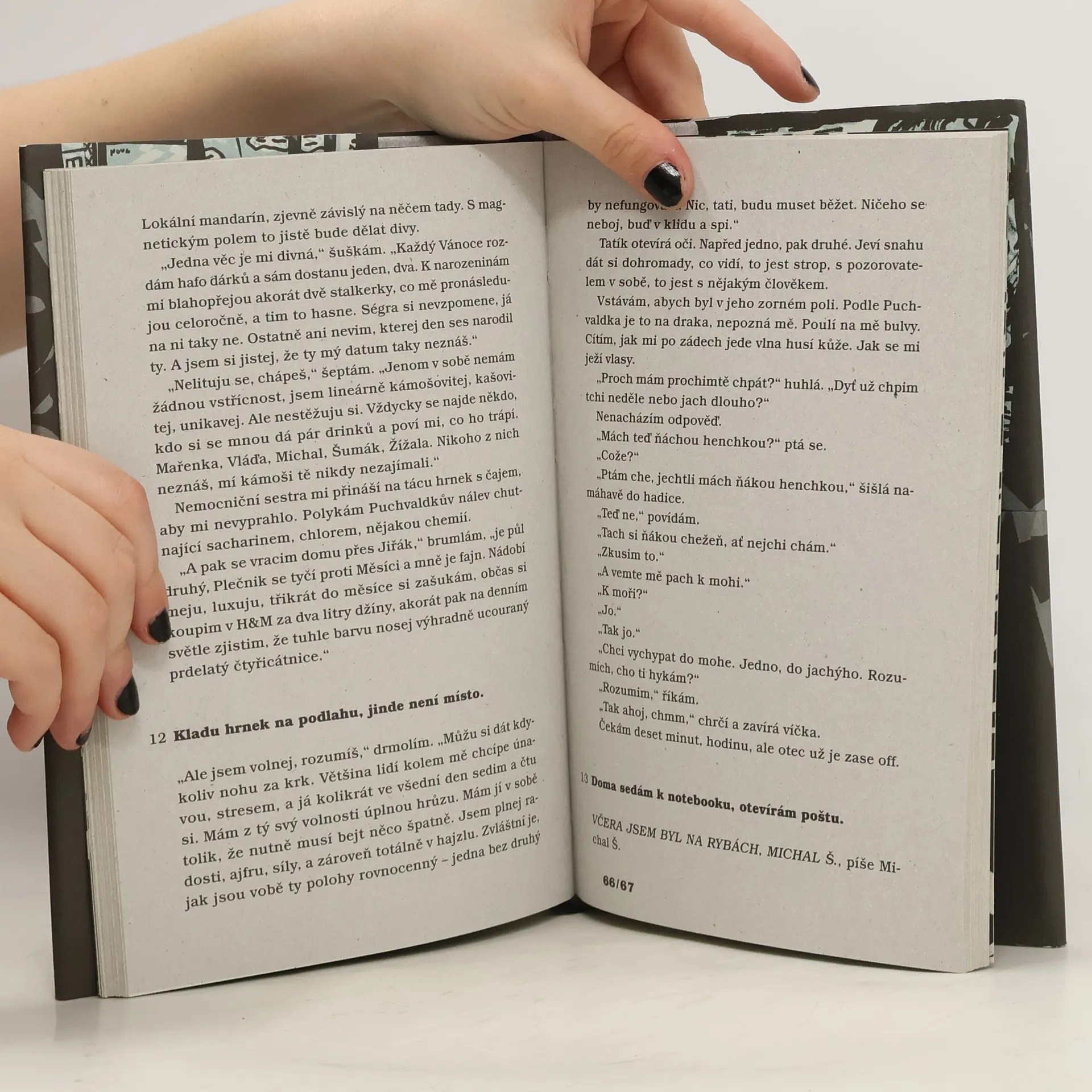 Nová próza Emila Hakla volně navazuje na autorovu nejúspěšnější knihu O rodičích a dětech. Ve třech příbězích píše vypraveč soukromou kroniku svého dosavadního života. Nejprve se vydává se dvěma mladšími přáteli vyzkoušet paragliding, aby se v napůl bezmocném závěsu začal přibližovat k vlastní minulosti. Nejpůsobivějším, absolutním předělem tohoto triptychu je loučení s otcem a závěr patří cestě do dunajské delty, symbolickému pokusu najít sebe sama. I v nejsmutnější situaci si Haklův hrdina dokáže zachovat odstup a s jazykem i vlastní pamětí zachází se stejnou bravurou jako Hrabalův Haňťa. Je ovšem dnešní, a proto drsnější, když v sebeironickách glosách a metaforách konstatuje, o co jde outsiderům i vítězům: Vzájemně si předvádět odrbané plechové slepičky svých životů. Natahovat klíč a přihlížet, jak zobou...