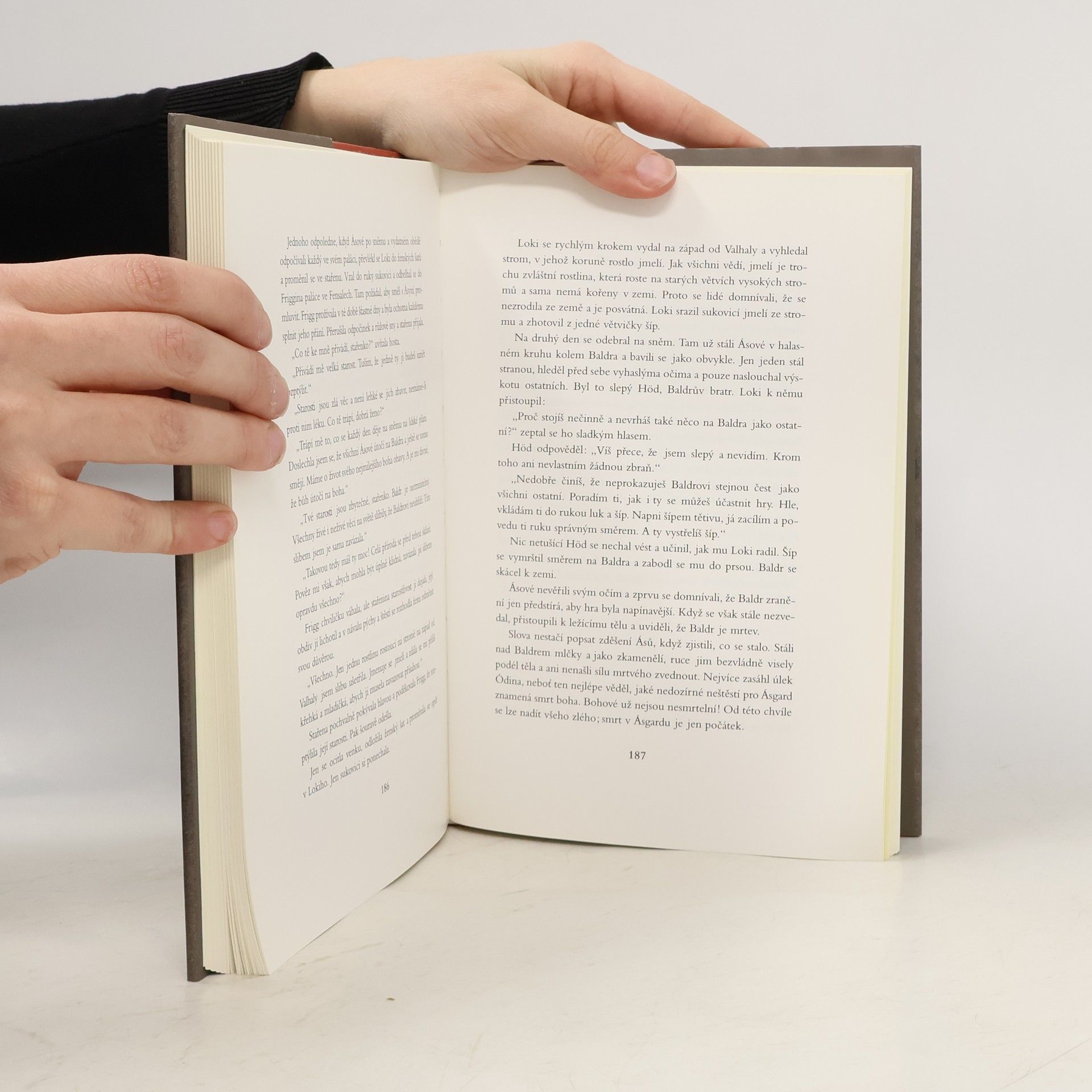 Podtitul: Severské mýty a báje. Vydání českého souboru staroseverských mýtů a bájí, jejichž autorkou je naše přední nordistka, která středověké mýty převyprávěla překrásnou, živou a čtivou češtinou. Kniha Soumrak bohů je českým beletristickým zpracováním dvou islandských rukopisů ze 13. století -- sbírky severských mytologických a hrdinských básní Starší Edda a prozaického převyprávění mytologie od islandského dějepisce Snorriho Sturlusona (Mladší nebo Snorriho Edda). Naše přední nordistka Helena Kadečková přibližuje čtenářům jejich obsah o něco výpravnější, zábavnější a především ucelenější formou a zároveň poskytuje představu o prostředí, v němž se tyto mýty a báje rodily. Vyprávění o vzniku a zániku světa, o životě, radostech a strastech bohů, obrů, skřítků i lidí, jež autorka obohacuje barvitými charakteristikami hlavních postav, nabízí čtenářům pohled do svérázného světa staroseverských mýtů. Čtenářský dojem pak navíc umocňuje bohatý, živý jazyk. Knihu doplňují ilustrace mladé výtvarnice Kláry Folvarské-Roseové, které osobitě evokují atmosféru severské mytologie. 1. vydání