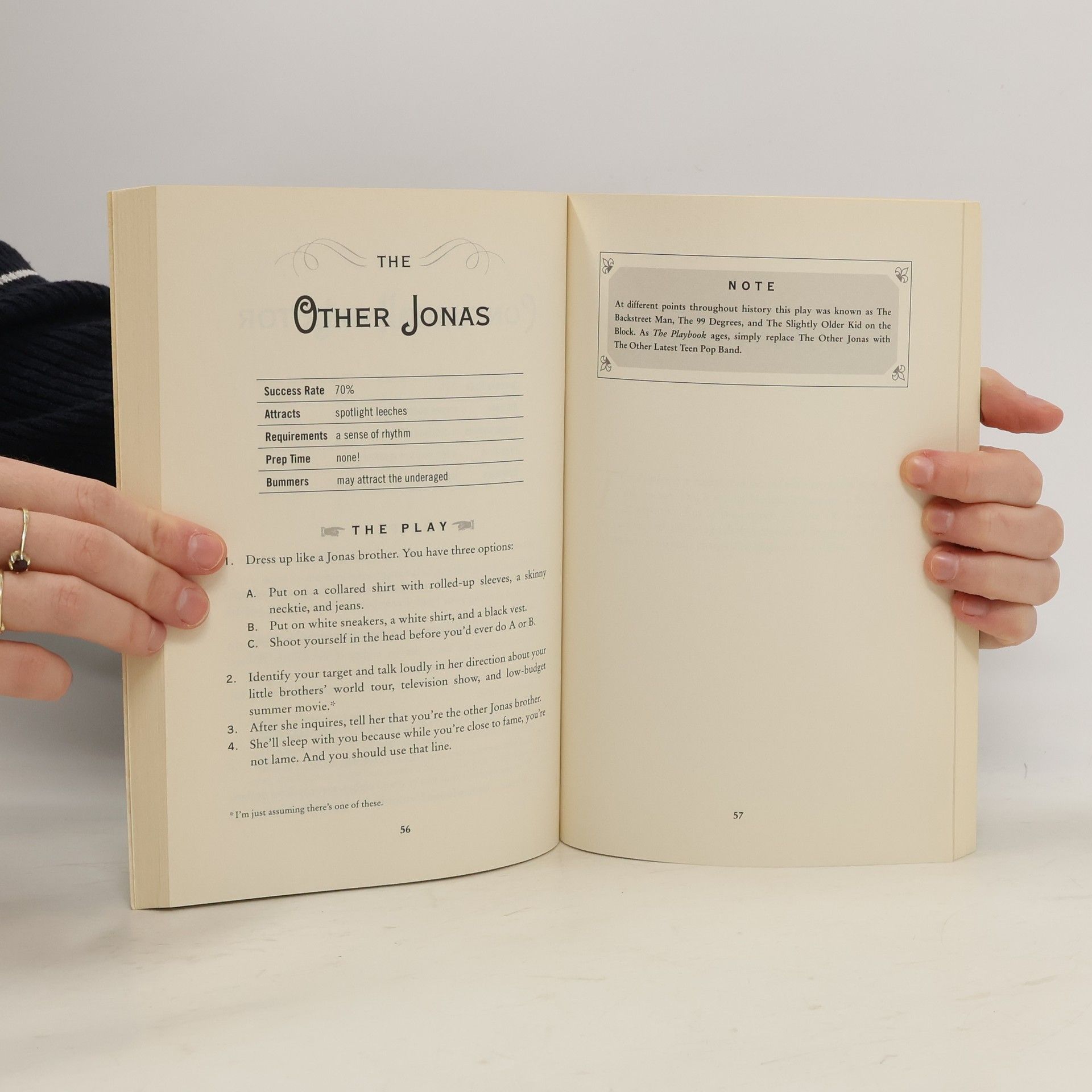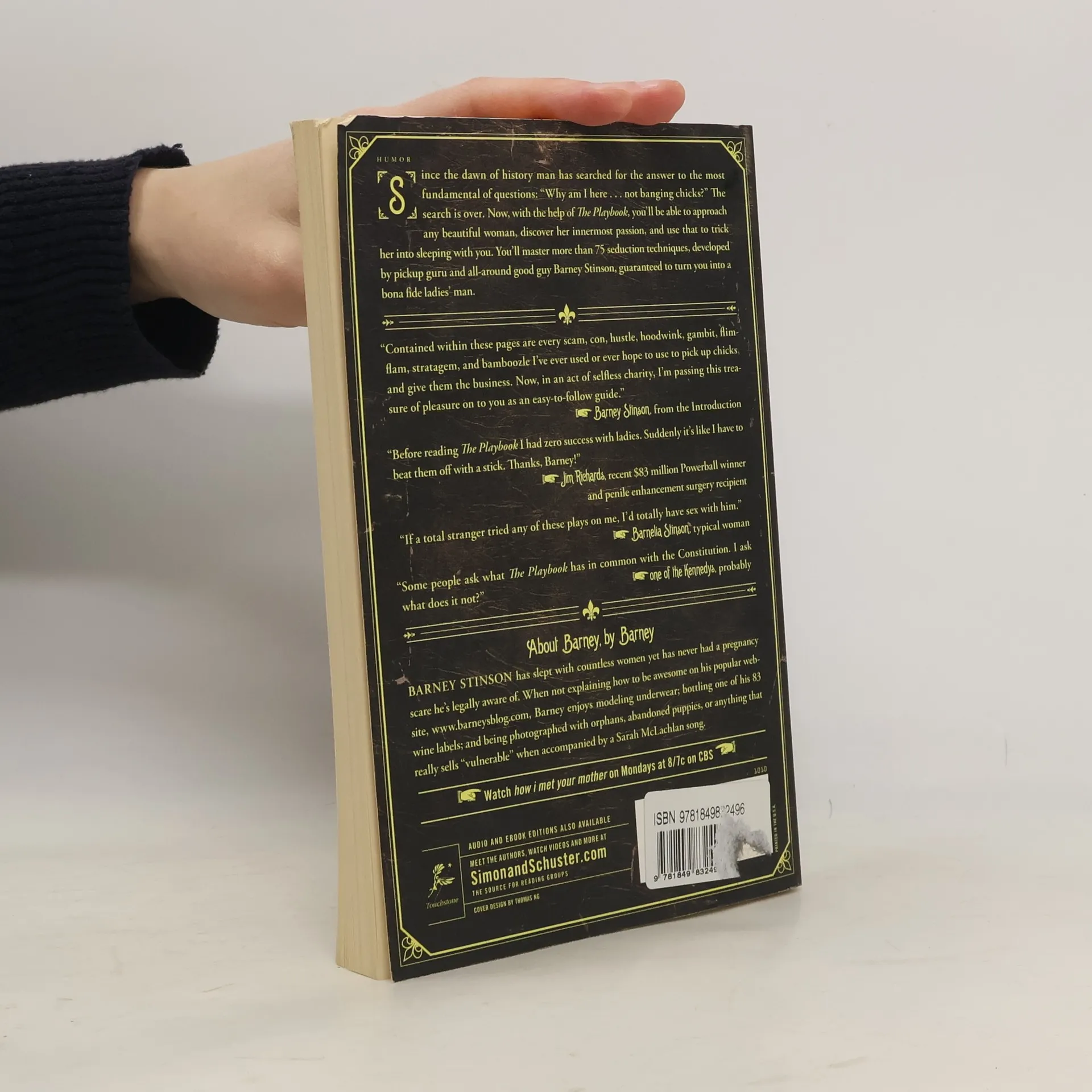 Since the dawn of history man has searched for the answer to the most fundamental of questions: "Why am I here . . . not banging chicks?" The search is over. Now, with the help of The Playbook, you'll be able to approach any beautiful woman, discover her innermost passion, and use that to trick her into sleeping with you. You'll master more than 75 seduction techniques, developed by pickup guru and all-around good guy Barney Stinson, guaranteed to turn you into a bona fide ladies' man.