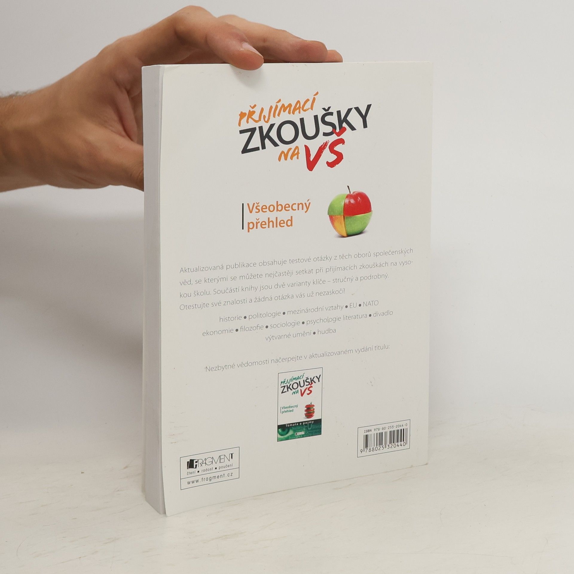 Aktualizovaná publikace obsahuje testové otázky z těch oborů společenských věd, se kterými se můžete nejčastěji setkat při přijímacích zkouškách na vysokou školu. Součástí knihy jsou dvě varianty klíče – stručný a podrobný. Otestujte své znalosti a žádná otázka vás už nezaskočí! Historie – politologie – mezinárodní vztahy – EU – NATO – ekonomie – filozofie – sociologie – psychologie – literatura – divadlo – výtvarné umění – hudba. Nezbytné vědomosti načerpejte v aktualizovaném vydání titulu: (samoinzerce na Přijímací zkoušky na VŠ – Všeobecný přehled – Témata a pojmy)