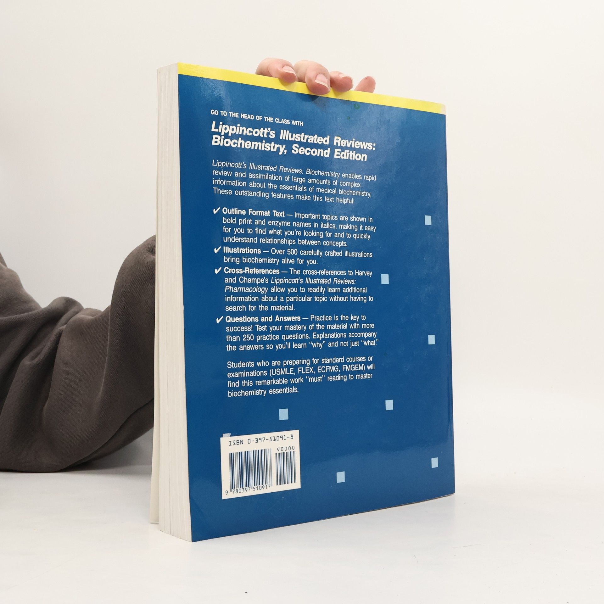 A study guide and review that provides a quick survey of the field of biochemistry, covering the essentials that students need to know. It includes board-type questions to give students experience for what they will encounter in actual examinations.