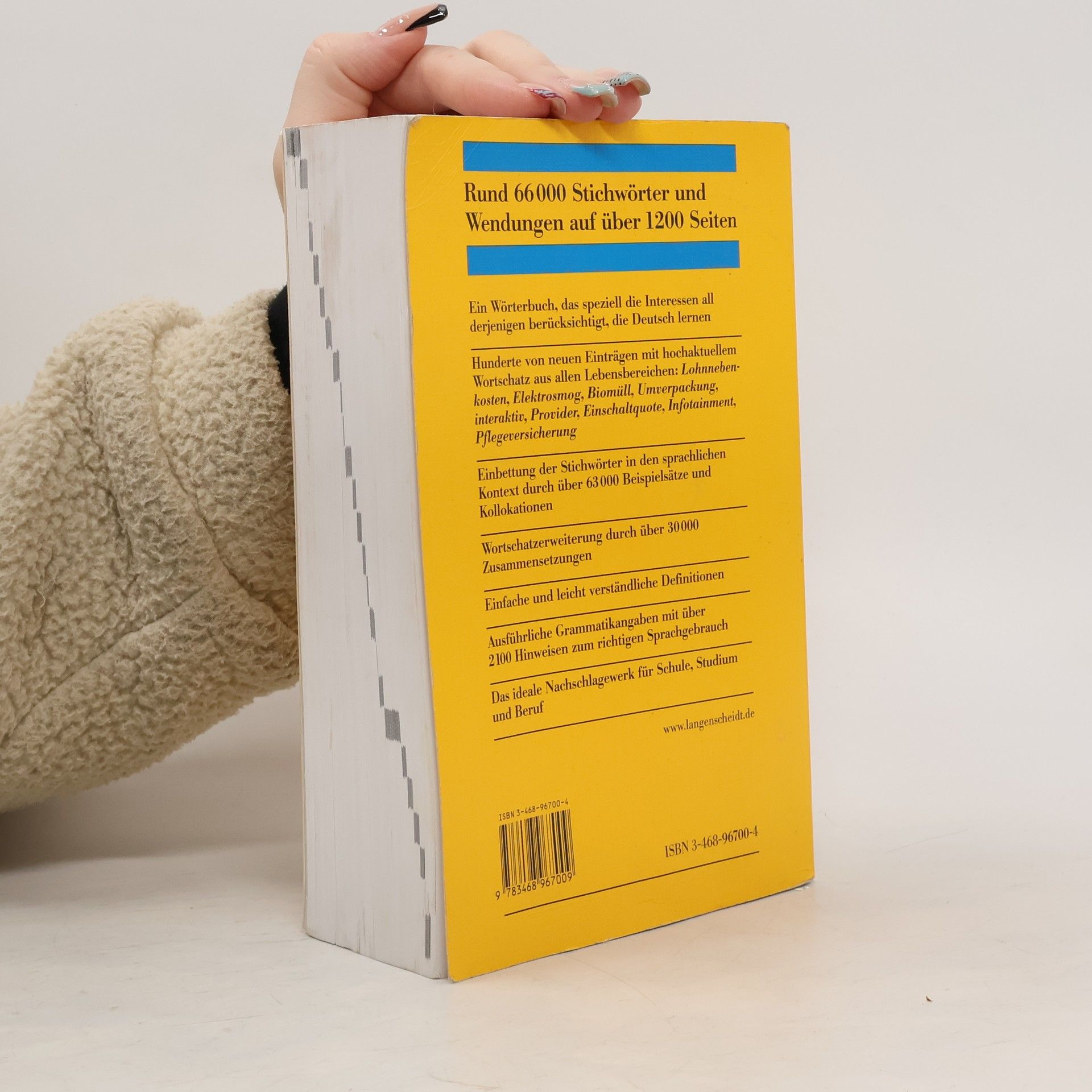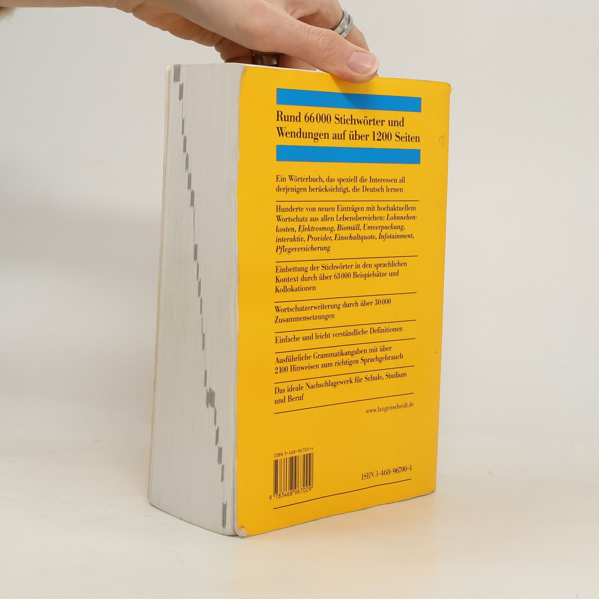 Ein umfassendes einsprachiges Lernerwörterbuch für alle, die Deutsch lernen, mit rund 66.000 Stichwörtern und Wendungen. Hauptkriterium bei der Auswahl war ihre Gebrauchshäufigkeit im geschriebenen und gesprochenen Deutsch, wobei der gesprochenen Sprache besondere Aufmerksamkeit geschenkt wurde.