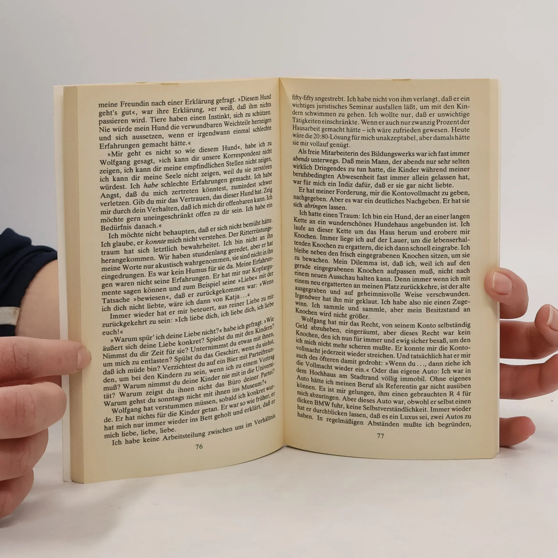 »Ich bin jetzt 42. Vor drei Jahren bin ich ausgestiegen, in meiner Ehe war ich ein Nichts. Mein Mann selbst hat immer wieder gesagt: ›Du bist ein Nichts und Niemand. Du wirst in deinem Leben keine Spur hinterlassen. Alles, was du bist, bist du nur durch mich.‹ -Ich bin ein Nichts geworden. Mit 22 war ich kreativ und eigenständig. Aber dann habe ich geheiratet und bin in einem unheimlich schleichenden Prozeß die Frau geworden von..., das Zubehör von..., das Anhängsel von... Noch heute werde ich als die ›Exgattin des Abgeordneten Professor Dr. Manmann‹ gehandelt. Als wir heirateten, war ich die aktivere. Er ist durch meine Blutspenden zu Kräften gekommen. Er hat Karriere gemacht, ich hatte den Haushalt, und ich hatte die drei Kinder.« Dieses Buch ist die schonungslose offene Lebensbilanz einer jungen Frau, die nach einem langen, schmerzhaften Ablösungsprozeß den Sprung aus der Ehe gewagt hat, um ein neues Leben in Unabhängigkeit zu versuchen. Judith Jannbergs Selbstfindung könnte vielen Frauen Mut machen, ihre Lage zu erkennen und zu handeln.