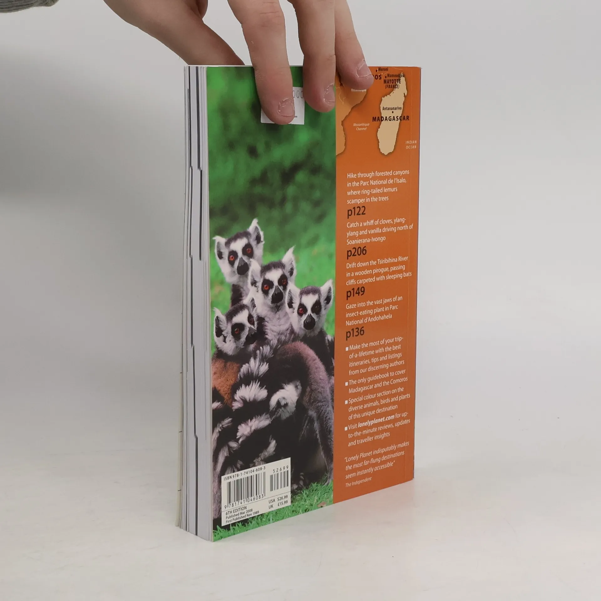 Discover Madagascar & Comoros Hike through forested canyons in the Parc National de I'Isalo, where ring-tailed lemurs scamper in the treesCatch a whiff of cloves, ylang-ylang and vanilla driving north of Soanierana-IvangoDrift down the Tsiribihina Riverin a wooden pirogue, passing cliffs carpeted with sleeping batsGaze into the vast jaws of an insect-eating plant in Parc National d'Andohahela In This Guide: Make the most of your trip-of-a-lifetime with the best itineraries, tips and listings from our discerning authorsThe only guidebook to cover Madagascar and the ComorosSpecial color section on the diverse animals, birds and plants of this unique destinationVisit "lonelyplanet.com" for up-to-the-minute reviews, updates and traveler insights