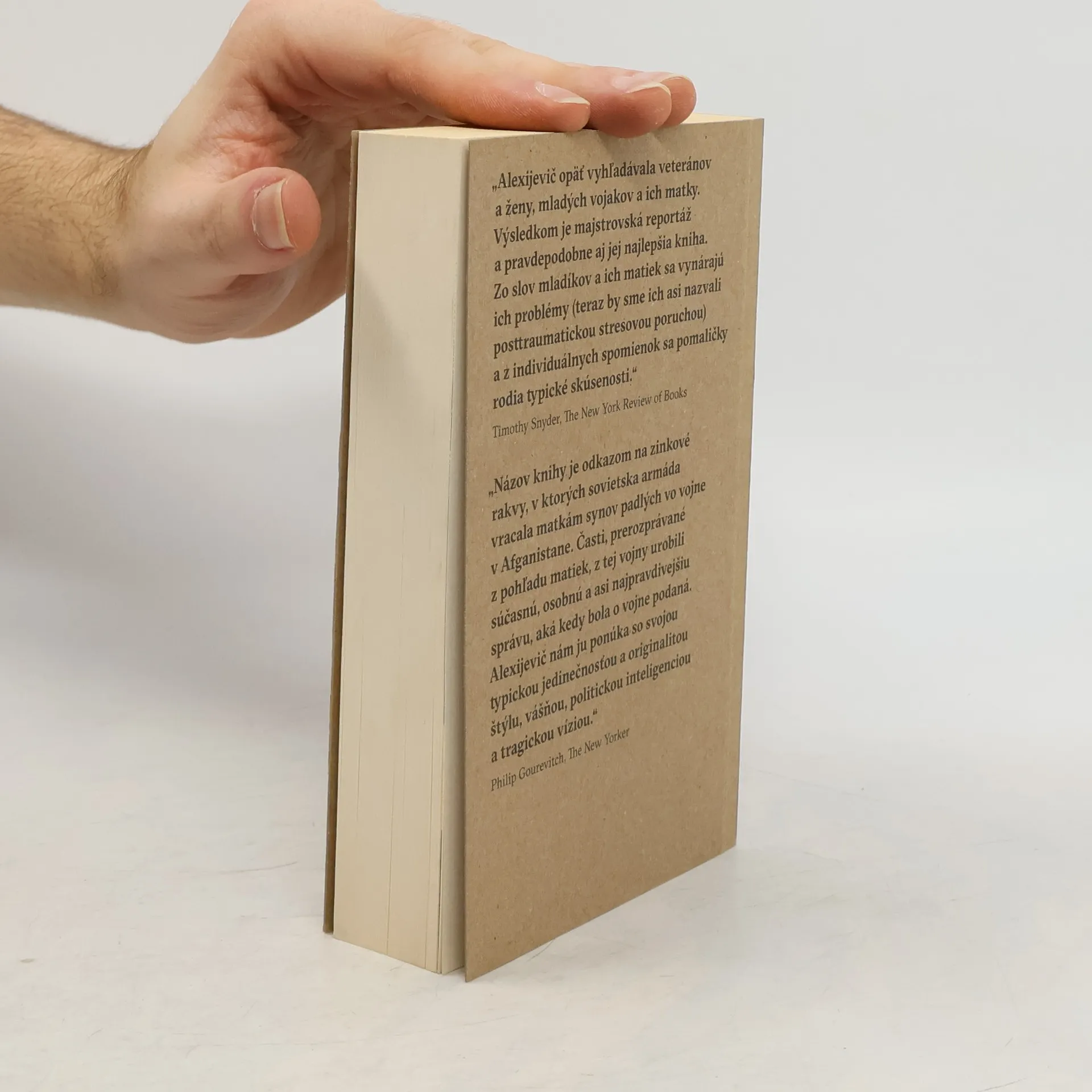 Afganistan je jedno z najhorúcejších miest na mape sveta. A nie je to len podnebím. Svetlana Alexijevič, držiteľka Nobelovej ceny za literatúru venovala Afganistanu jednu zo svojich kníh. Presnejšie – desiatim rokom sovietskej intervencie a krvavej sovietsko-afganskej vojny. Od knihy ku knihe sa Svetlana Alexijevič zaoberá jediným – zmenšuje veľké dejiny až na rozmery malého človeka. Vojna, impérium, tisícky mŕtvych – všetko sú to až príliš nepredstaviteľné veci. Ale chorľavý chlapec so samopalom, ktorý nemá rád popravy, to je už čosi skutočné. A rovnako aj vojačikovia s jazvami na tvári i matky, ktoré po smrti detí zaživa zomreli medzi zbierkami známok, fotografiami, nikdy neoblečenými vecami. Po prvom vydaní knihy Zinkoví chlapci sa na Svetlanu Alexijevič spustila vlna súdnych sporov, ktoré proti nej viedli hrdinovia tejto knihy. Skutočne je pravda až taká neznesiteľná? Aj tá vlastná? V tejto knihe sa nedozviete, prečo Sovieti intervenovali do Afganistanu. Pochopíte však, aká nezmyselná je každá vojna, keď z nej prilietajú lietadlá plné zinkových sarkofágov. Kniha Zinkoví chlapci vychádza v preklade Kristíny Karabovej.