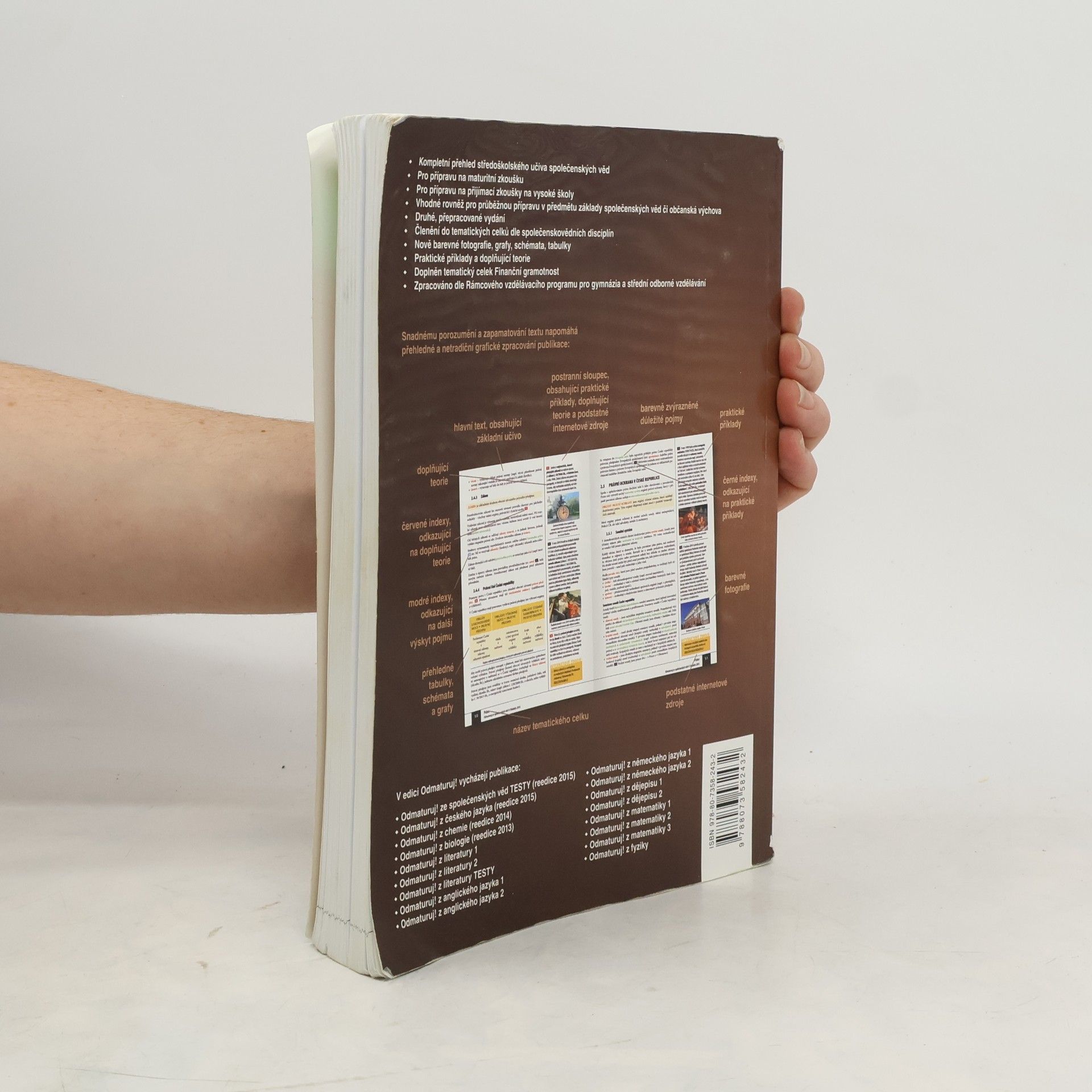 Nakladatelství DIDAKTIS připravuje nové vydání úspěšného titulu Odmaturuj! ze společenských věd z edice Odmaturuj! Edice Odmaturuj! je primárně určena na přípravu k maturitní zkoušce, a to především k maturitní zkoušce v části profilové, taktéž slouží k přípravě na přijímací zkoušky na vysoké školy s humanitním zaměřením. Titul Odmaturuj! ze společenských věd však v novém vydání doporučujeme také pro průběžnou přípravu v předmětu základy společenských věd či občanská výchova na středních školách. I když tituly z edice Odmaturuj! nejsou koncipovány jako učebnice, je do nich zařazeno z hlediska obsahové komplexnosti veškeré středoškolské učivo. Titul je zpracován dle RVP pro gymnázia a RVP pro střední odborné vzdělávání. Nové vydání bude aktualizované podle legislativy účinné k 1. 1. 2015, bude doplněno o nové teoretické poznatky v rámci jednotlivých vědních disciplín a o praktické příklady. Obsah knihy je členěn do následujících tematických celků: Politologie Právo Mezinárodní vztahy Ekonomie Sociologie Psychologie Filozofie Etika Logika a teorie vědy Religionistika Finanční gramotnost Po grafické stránce je důležitou změnou převedení titulu do barevného provedení na bílém podkladu, výklad je doplněn řadou schémat, tabulek a grafů. Nově byl přidán také odkazový aparát v rámci textu a odkazy na podstatné internetové zdroje.