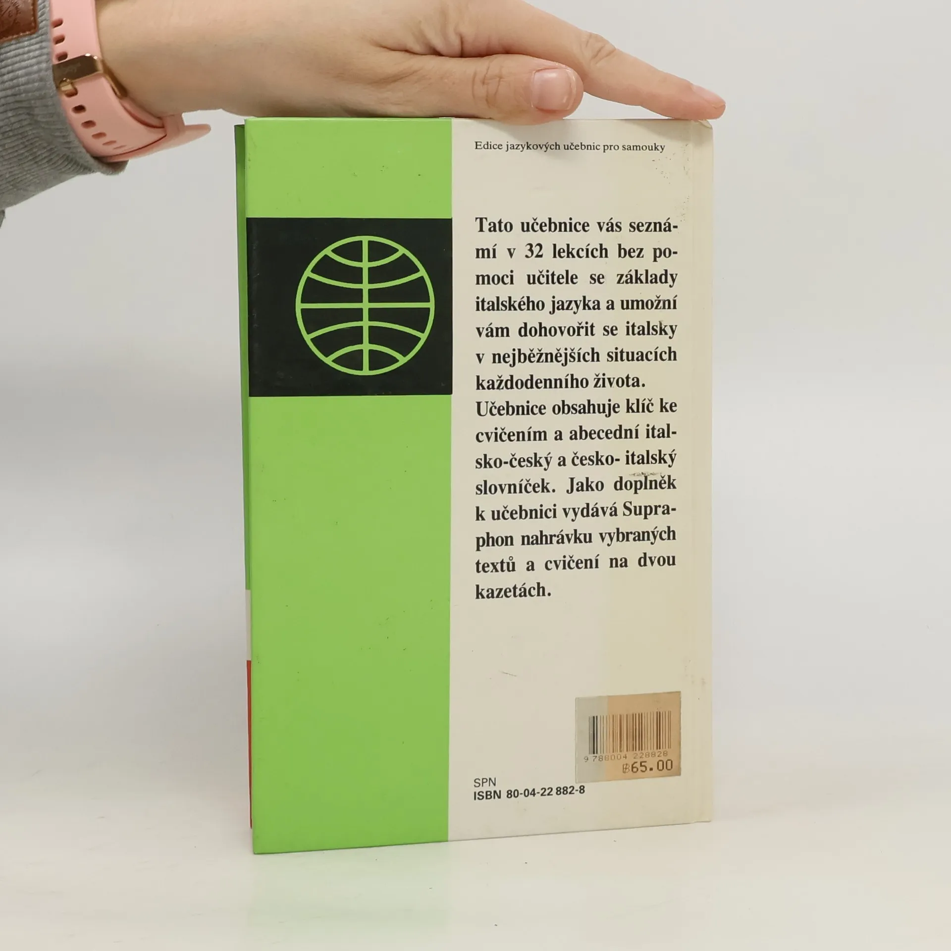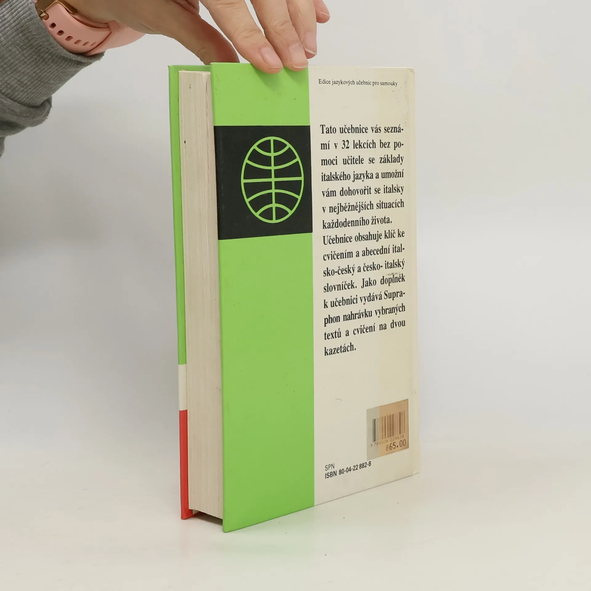 Tato učebnice vás seznámí ve 30 lekcích bez pomoci učitele se základy italského jazyka a umožní vám dohovořit se italsky v nejběžnějších situacích každodenního života. Učebnici doplňuje v příloze "Klíč k cvičením" a abecední italsko-český a česko-italský slovníček. 3. vydání. Cena knihy v čase vydání: 20,50 Kčs.