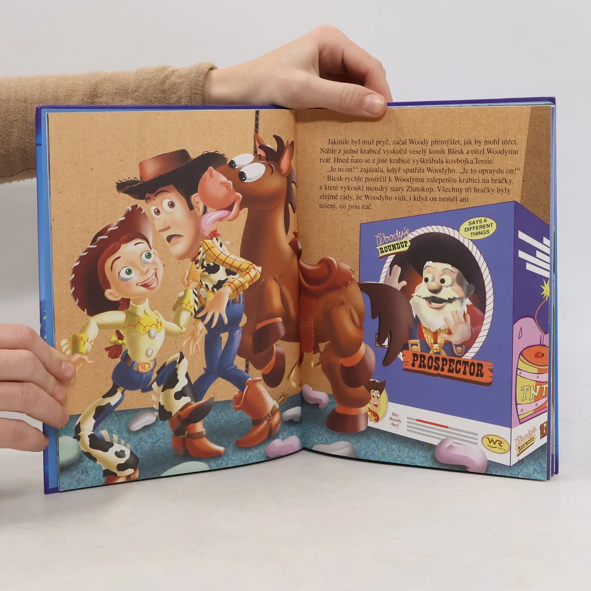Pokud jste se s hračkami seznámili už v předcházející knížce, určitě víte, že malý Andy jich má doma plný pokojíček, ale jeho nejoblíbenější je kovboj Woody. Když si ho chce vzít Andy na tábor, nedopatřením mu odtrhne ruku a Woody musí zůstat doma. A tehdy začíná další dobrodružství, které s Woodym prožijí i ostatní Andyho hračky. Woodyho totiž ukradne jistý zlý muž, který ho chce prodat do muzea hraček. Něco takového ale ostatní Andyho hračky nechtějí dopustit a pronásledují zlého muže až na letiště. Podaří se jim zachránit Woodyho včas?