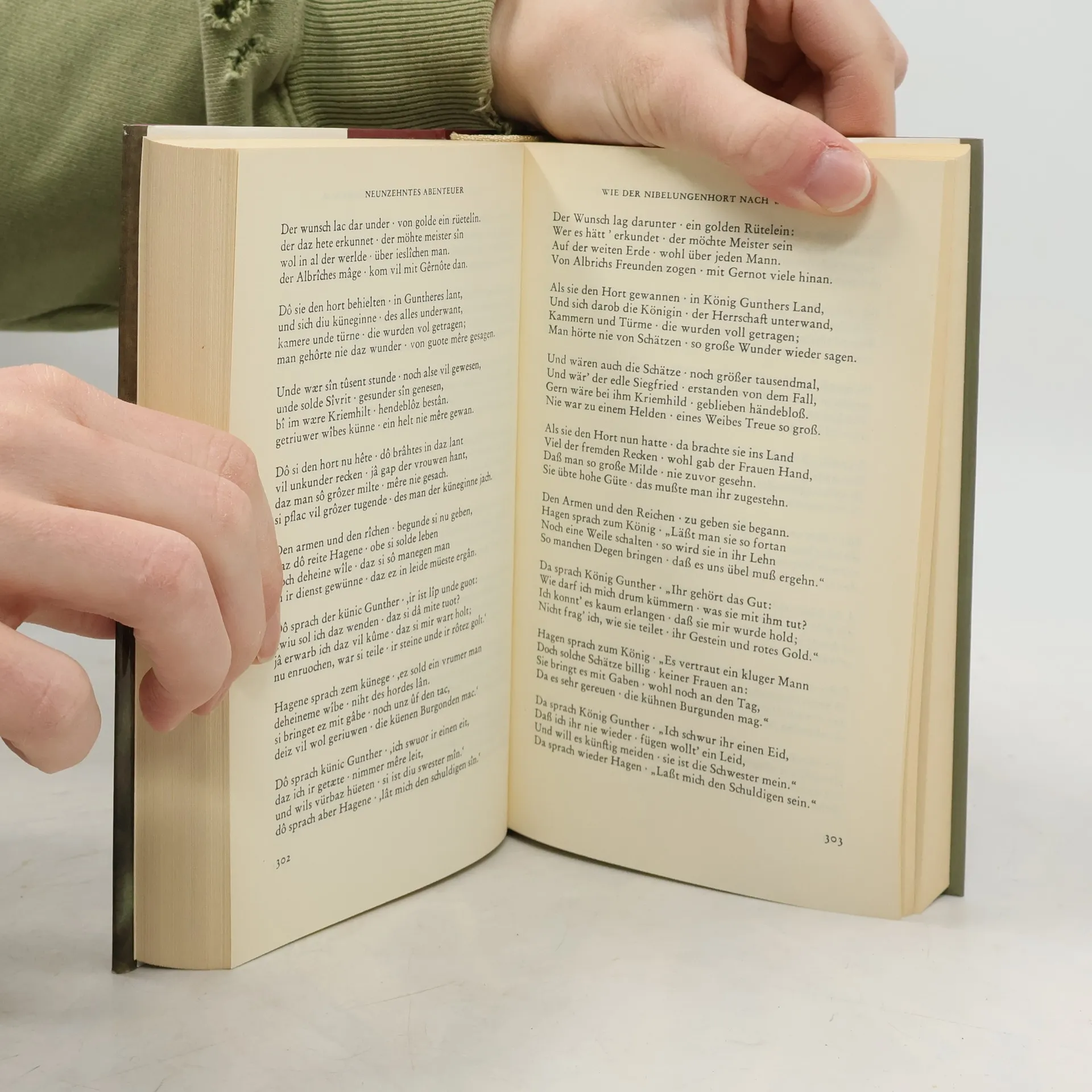 Das Nibelungenlied ist das berühmteste deutsche Heldenepos, ursprünglich in mittelhochdeutscher Sprache von einem nicht namentlich genannten Dichter um das Jahr 1200 (n. Chr.) verfasst. Die Ursprünge der Erzählung gehen bis etwa ins fünfte nachchristliche Jahrhundert zurück, und scheinen viele Jahrhunderte lang nur mündlich tradiert worden zu sein. Im Kern der Erzählung steht das Werben des jugendlichen Helden Siegfried um die burgundische Königstochter Kriemhild, verbunden mit der Gewinnung Brunhilds für König Gunther. Weiter die Vermählung der beiden Paare, die Ermordung Siegfrieds durch Hagen, und schließlich Kriemhilds Rache mit Hilfe des hunnischen Königs Etzel. Im Nationalsozialismus wurde das Nibelungenlied für nationalistisches Gedankengut missbraucht. Man feierte die Wiederkehr der germanischen Größe und des Heldentums, und unterlegte die Idee des deutschen »Volkstums« mit diesen »germanischen Tugenden«. Tatsächlich hat diese Einordnung als überhöhtes Nationalepos mit dem Zeitgeist der Entstehungszeit um 1200 überhaupt nichts zu tun. Die große Kraft und mitreissende Dramaturgie des Epos haben auch den ideologischen Missbrauch überstanden. Spätestens seit J. R. R. Tolkiens »Herr der Ringe« lassen sich zahlreiche Elemente des Stoffes in modernen Fantasy-Romanen wiederfinden.