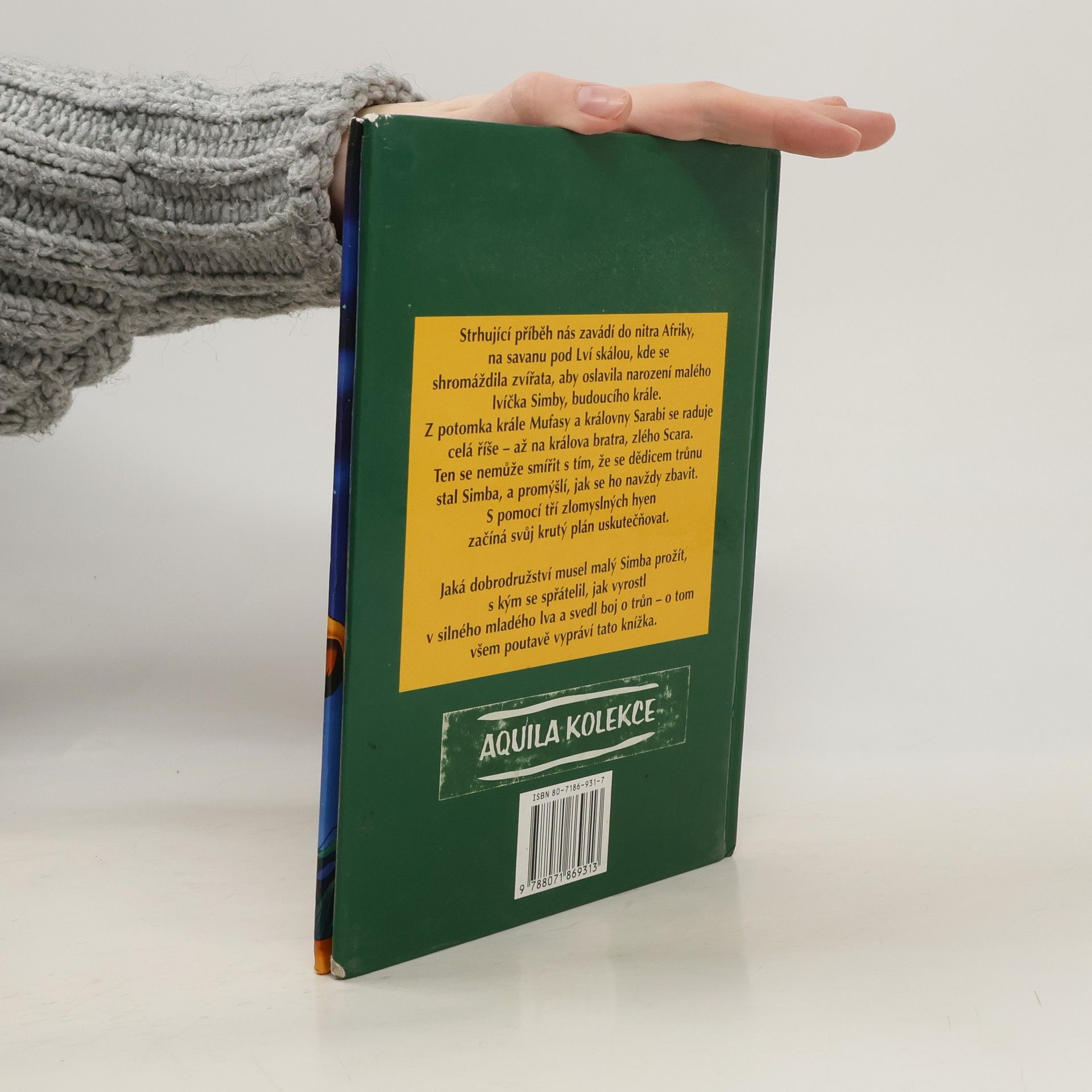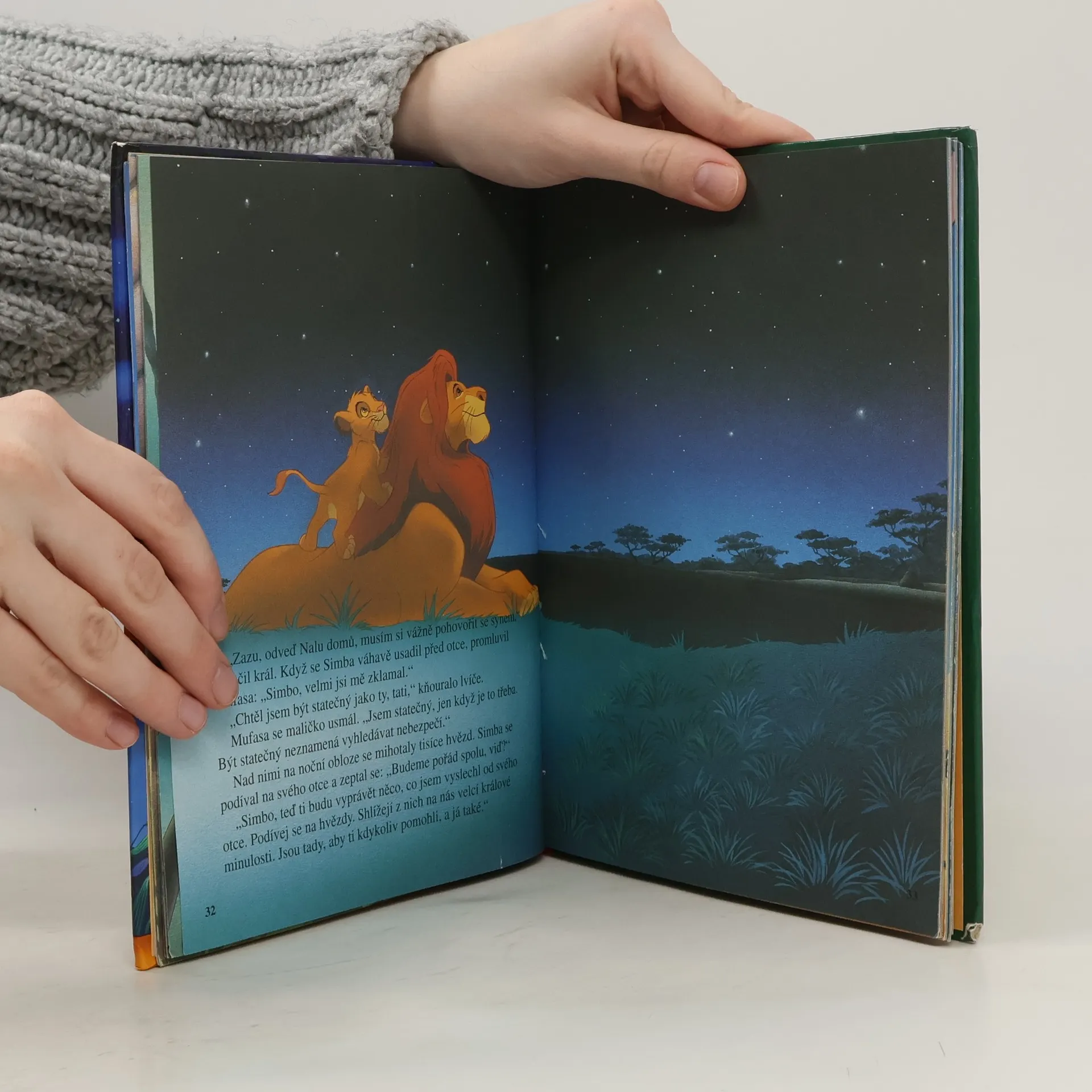 Oranžový kotouč slunce nahlédl prvními žhavými paprsky do nekonečné země písku, skal a stepní trávy a nad tím dílem světa, který lidé pokřtili jménem Afrika, se rozezněly tisíce bubnů a bubínků. Ale to nebouřily bubny! To dusala kopyta zeber a žiraf a dupaly mohutné sloní nohy. A nad bubny vřískaly a pípaly hlasy tisícihlavého sboru dalších zvířat. Všechna spěchala, aby se poprvé poklonila prvorozenému synu lvího krále Mufasy