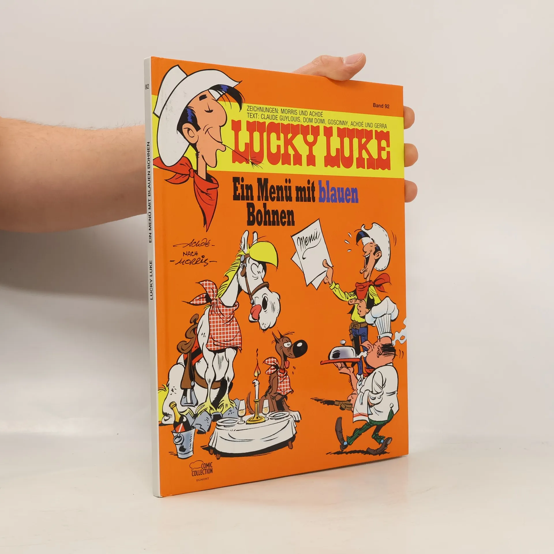 Noch nie zuvor in deutschen Lucky Luke Alben veröffentlichte Lucky Luke Geschichten lassen uns hier an den unglaublichen Abenteuern unseres Westernhelden teilnehmen. In Der französischen Koch führt uns erstmals der Nachfolgezeichner von Morris, Achdé stilsicher und humorgespickt durch einen Wettstreit zweier Köche, bei dem sich Rantanplan ganz nebenbei vollfrisst. Allerdings versagen mal wieder alle Erziehungsversuche an diesem vermutlich dämlichsten Hund des Westens in Fass, Rantanplan!“ Die Sehnsucht des Lappen Johan nach Rentieren in Ein Lappe in Kanada verschaffen Lucky Luke und seinem alten bekannten Oldtimer ein paar ausgefallene Lektionen aus der läppischen Trickkiste. Der Weg zum Sonnenuntergang ist für die Daltons leider nicht der Weg in die Freiheit, denn zum Sonnenuntergang reitet nur einer: Lucky Luke. Doch wenn Lucky Luke und Machine Gun Kid aufeinander treffen, fliegen die blauen Bohnen ziemlich dicht. Wenn sich dann das Jahr zum Ende neigt und in Stille Nacht, Rantanplan wacht! dieser sich in der Osterzeit wähnt, führt das trotz aller Irrtümer letztlich zu einem Weihnachtswunder. Die Rarität Paradise Gulch beschert Lucky Luke die Empfehlung hochberühmter Western-Filmhelden, sich dieses Paradies doch besser für etwas später aufzuheben und die Stadt in Richtung Sonnenuntergang zu verlassen, natürlich mit einem Gruß von Rintintin. Ein gelungenes Menü von Geschichten, das Mann und Pferd zum Wiehern bringt!