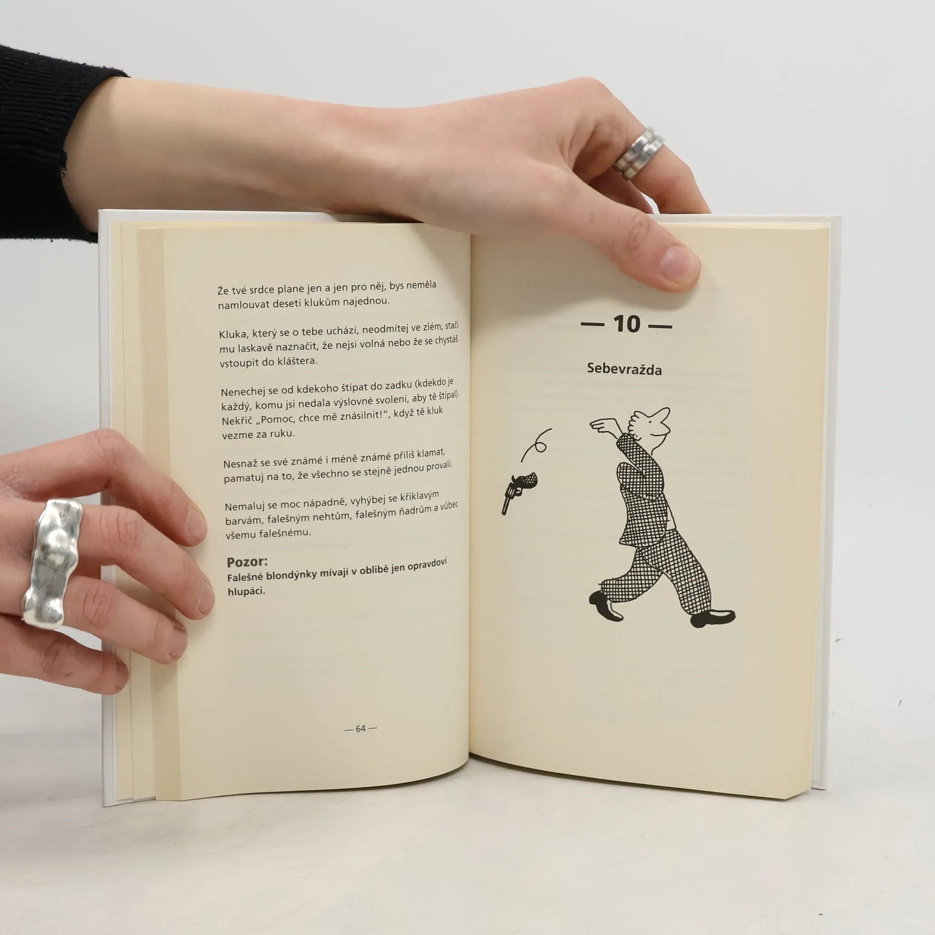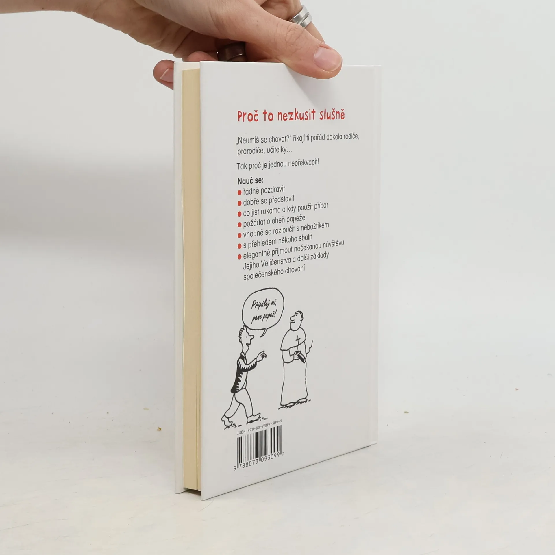 Víš, jak správně požádat papeže o oheň? Neházej si nohy na protější sedadlo ve vlaku, nemusí být čisté, a můžeš si ušpinit adidasky. Máš právo říkat psovi drž hubu? Můžeš říct pozdravpánbu někomu, kdo pustil ducha? A co když v salátu najdeš červa? Nebo něco jiného? A bacha! Nepouštěj walkmana na plný pecky. Ať si každý koupí svého