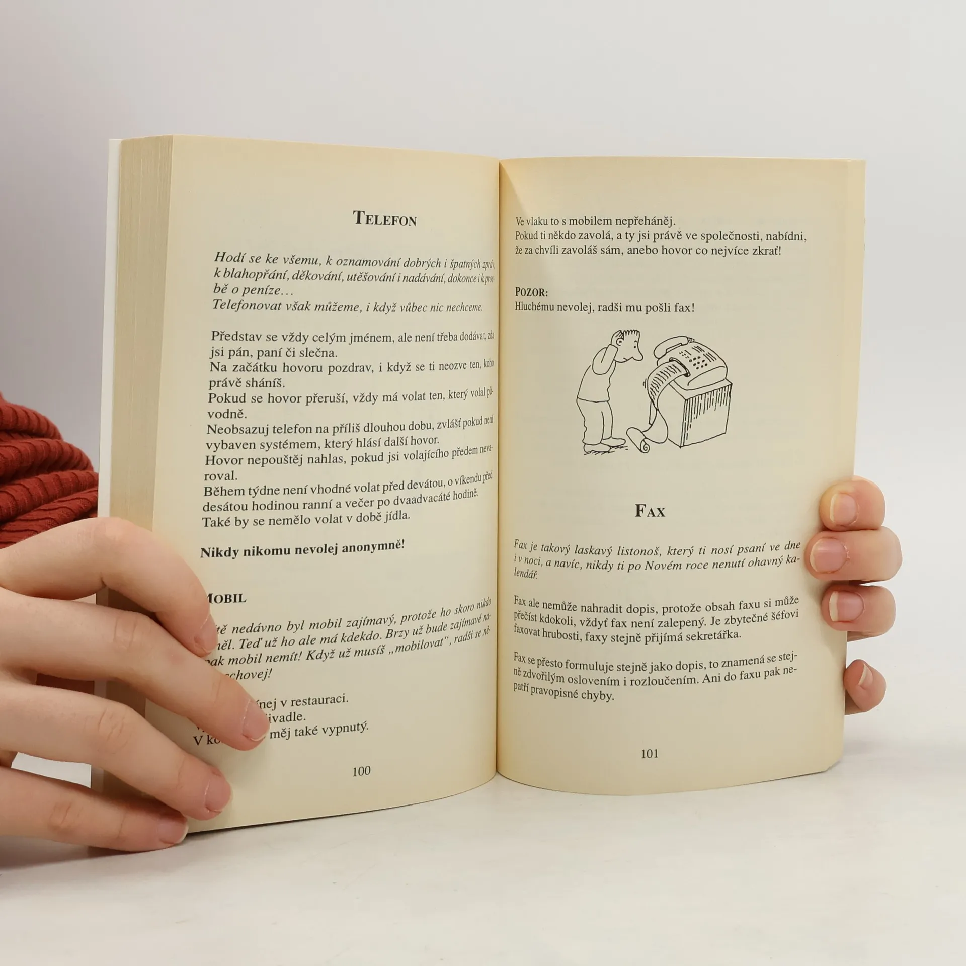 Víš, jak správně požádat papeže o oheň? Neházej si nohy na protější sedadlo ve vlaku, nemusí být čisté, a můžeš si ušpinit adidasky. Máš právo říkat psovi drž hubu? Můžeš říct pozdravpánbu někomu, kdo pustil ducha? A co když v salátu najdeš červa? Nebo něco jiného? A bacha! Nepouštěj walkmana na plný pecky. Ať si každý koupí svého.... celý text