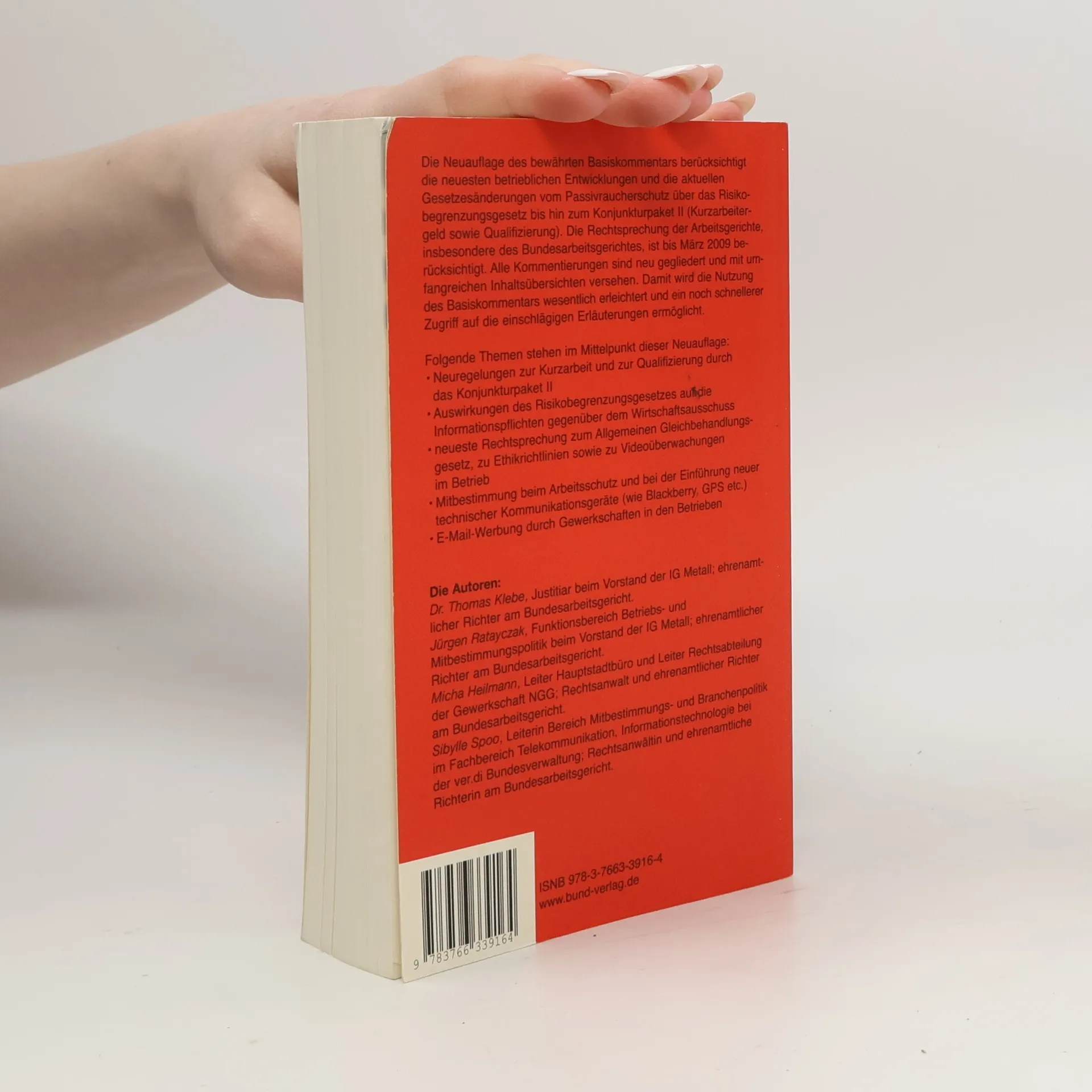 Der Basiskommentar ist das bewährte Handwerkszeug für jedes Betriebsratsmitglied. Leicht verständlich und prägnant erläutert er das gesamte Betriebsverfassungsrecht und bringt die Rechtsprechung auf den Punkt. Der Benutzer erhält zu vielen Einzelfällen einen Überblick über den gegenwärtigen rechtlichen Stand, die Meinung der Rechtsprechung und – wenn nötig – eine arbeitnehmerfreundliche Empfehlung der Autoren. Die 16. Auflage bietet neben den weiterhin aktuellen Fragen zu den Auswirkungen der Finanz- und Wirtschaftskrise auf die Arbeit des Betriebsrats u. a. folgende Schwerpunkte: - Änderungen des § 5 BetrVG - Datenschutznovelle 2009 - Gendiagnostikgesetzes - BAG zur außerordentlichen Verdachtskündigung - BAG zu den Sozialplanregelungen - BAG zu den Diskriminierungsverboten - BAG zur Beschwerdestelle nach dem AGG Gesetze und Rechtsprechung der 16. Auflage werden bis April 2010 – dem Zeitpunkt der BR-Wahlen – ganz aktuell eingearbeitet. Die Vorteile: - Breite Akzeptanz unter Betriebsräten, Fachanwälten - Praxisempfehlungen für zahlreiche Einzelfälle - Kompakt und gut verständlich in der Darstellungsweise