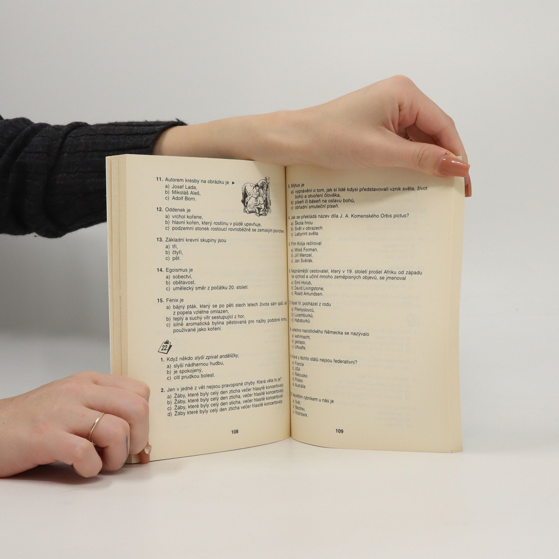 Publikace testovou formou prověřuje a doplňuje znalosti důležitých částí učiva společenskovědních předmětů a napomáhá tak ke kvalitní a úspěšné přípravě k přijímacím zkouškám na střední školy všech typů. Seznamuje žáky s testovou úlohou v dějepise, občanské výchově, literatuře, jak se s ní setkají u přijímacích zkoušek. Radí, kde potřebné znalosti získat, v závěru uvádí klíč správných řešení.